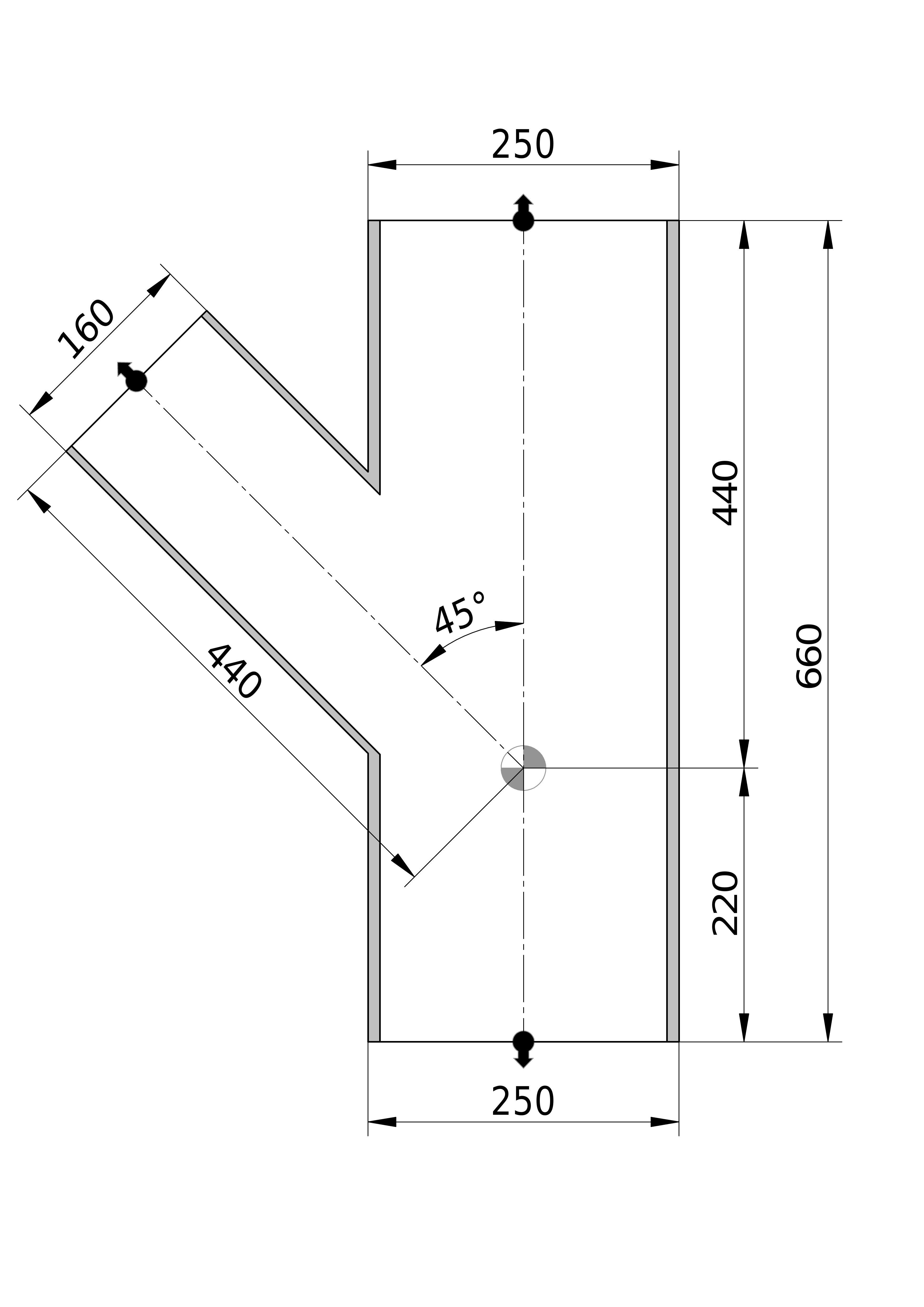 - Uitwendige buisdiameter aansluiting 2: 250 mm