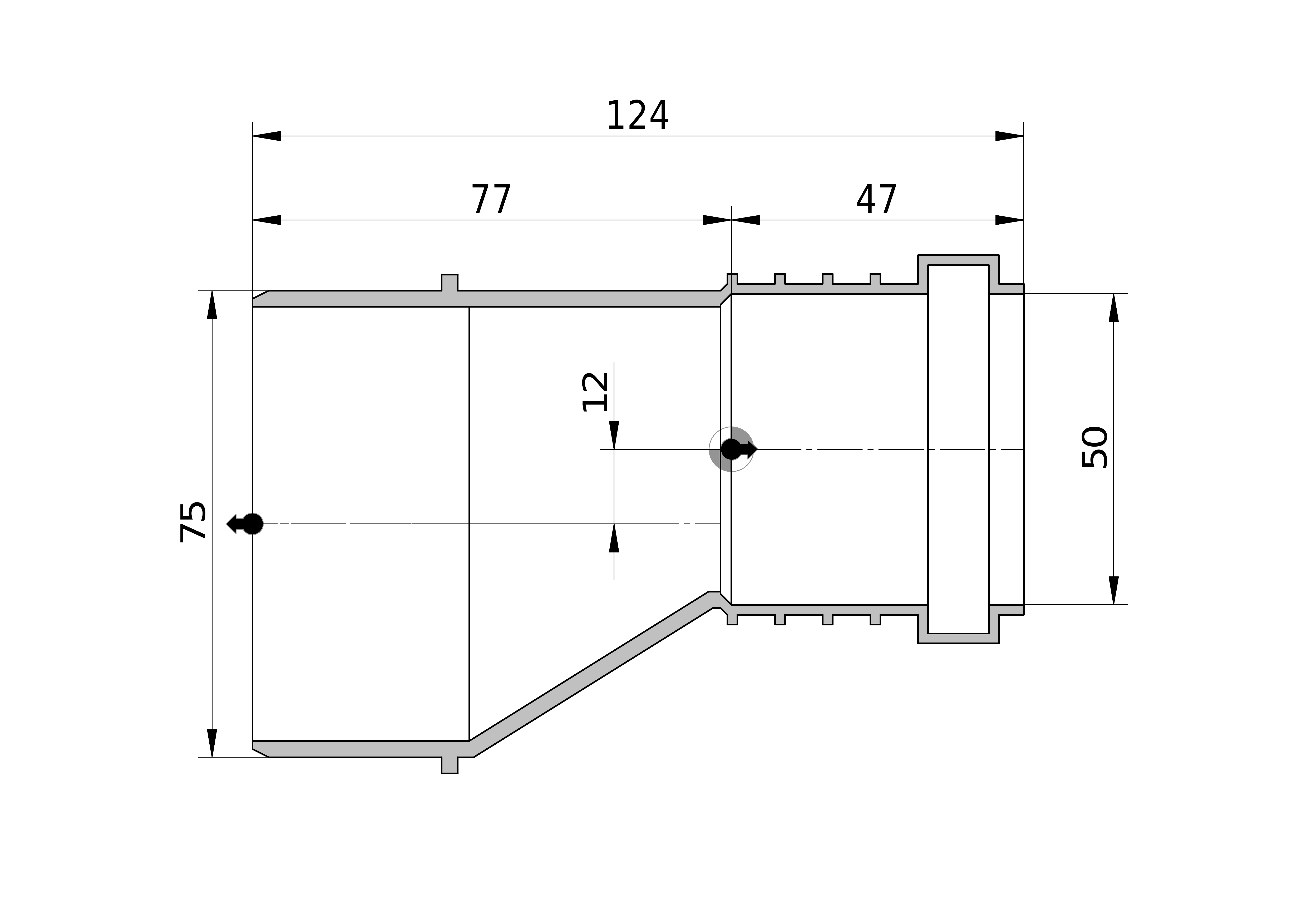 - Uitwendige buisdiameter aansluiting 2: 75 mm