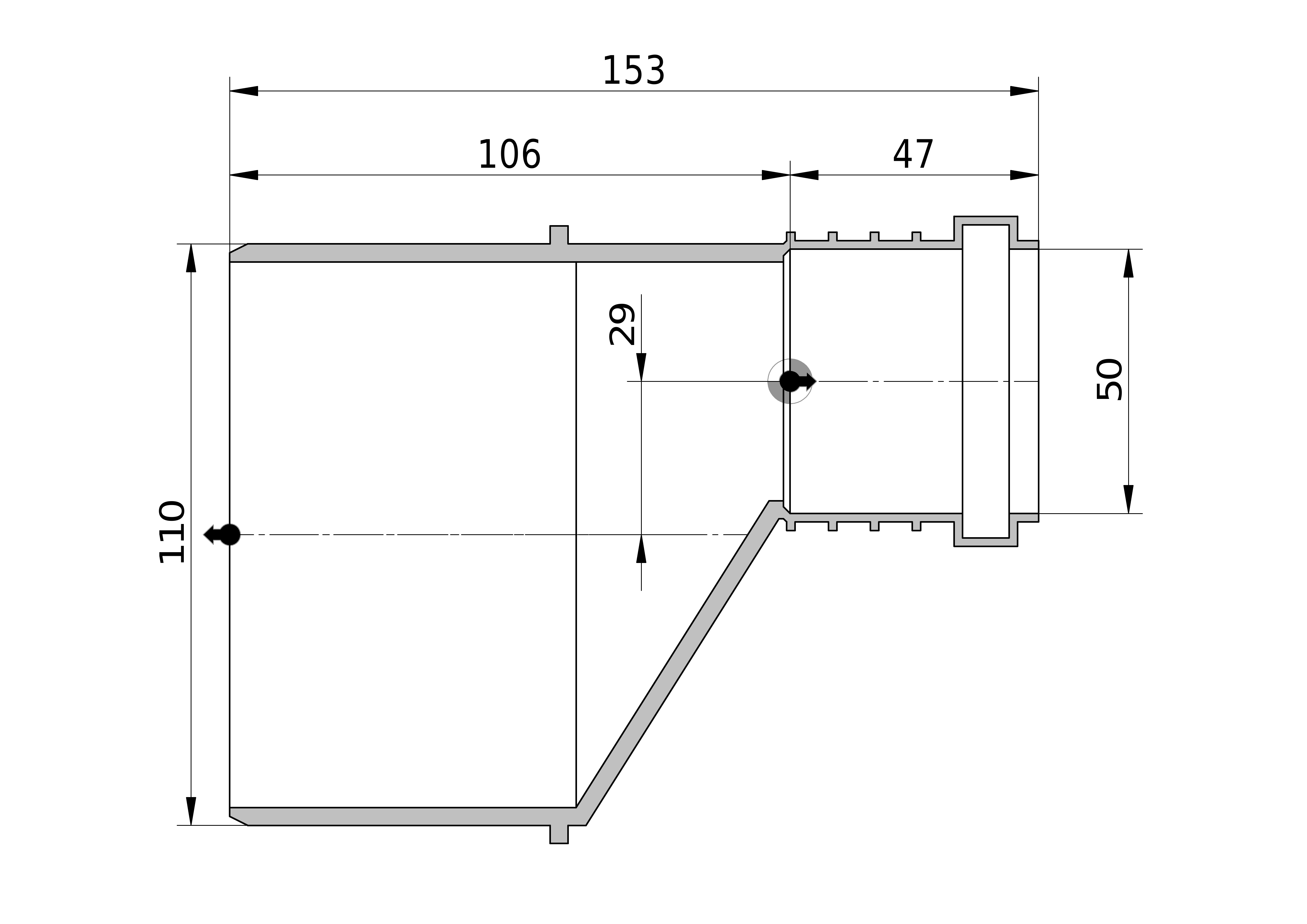 - Uitwendige buisdiameter aansluiting 2: 110 mm