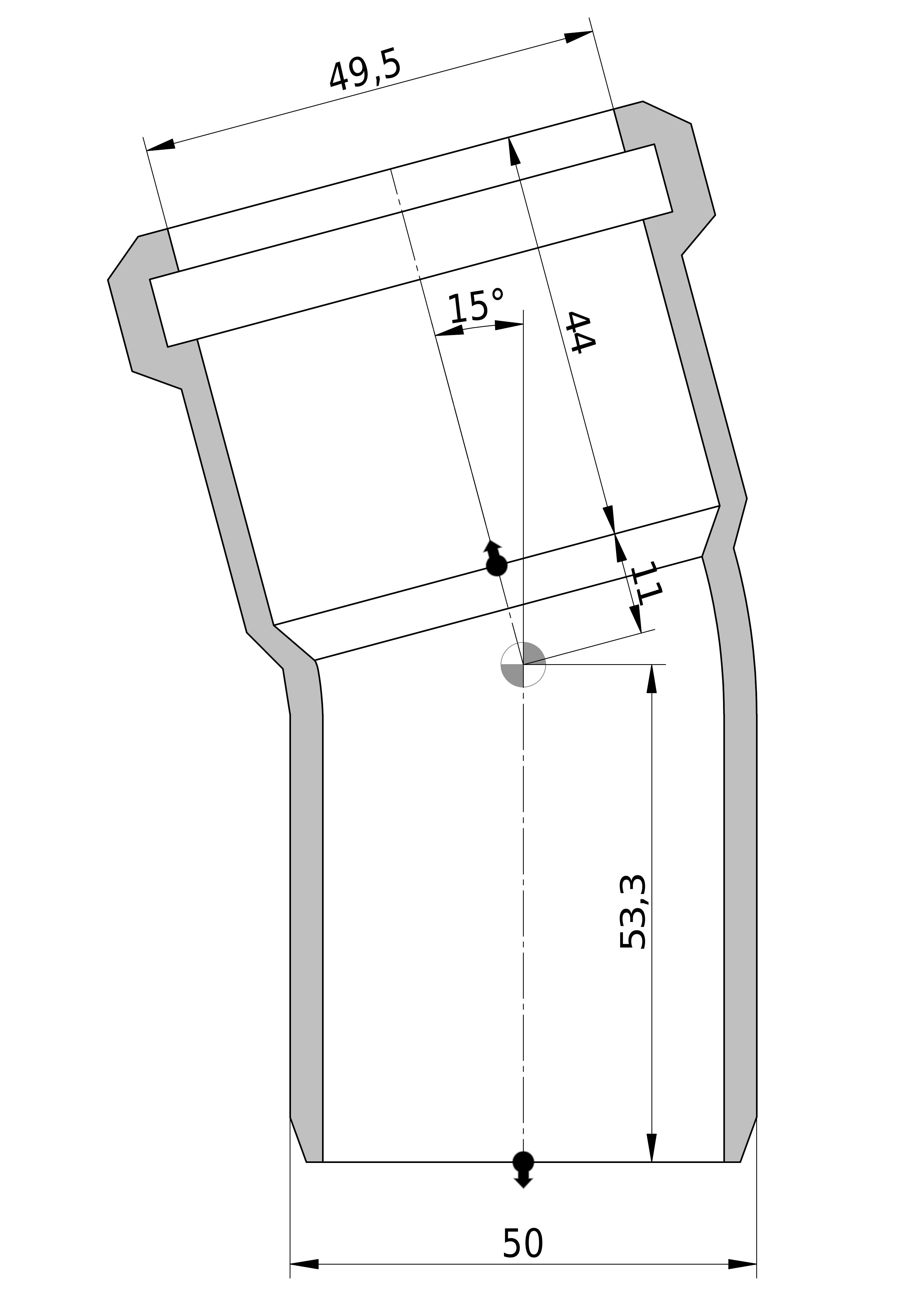 - Uitwendige buisdiameter aansluiting 1: 50 mm