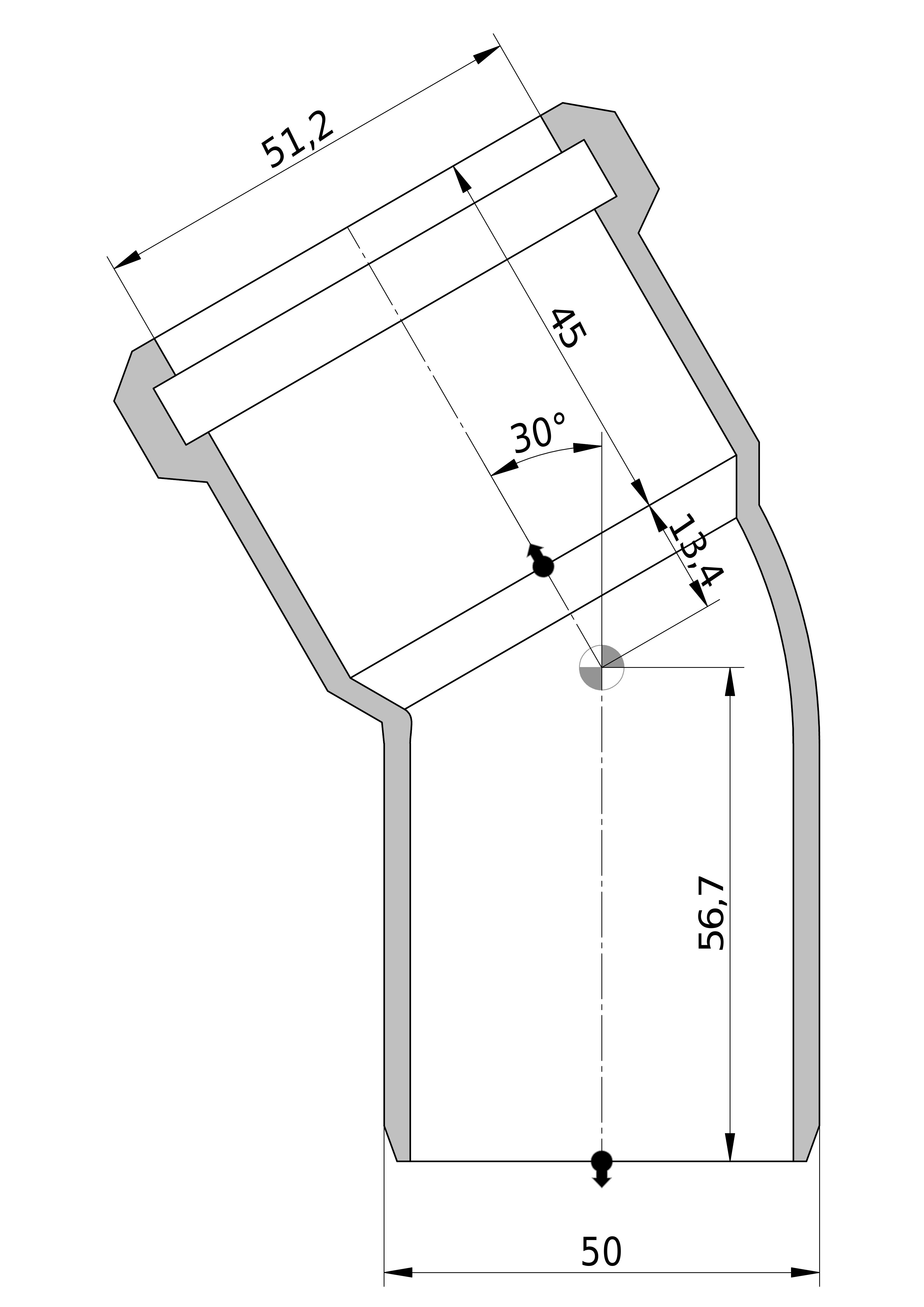 Bocht PP AS+ geluidsarm 30° lichtgrijs 50mm mof x spie Wavin