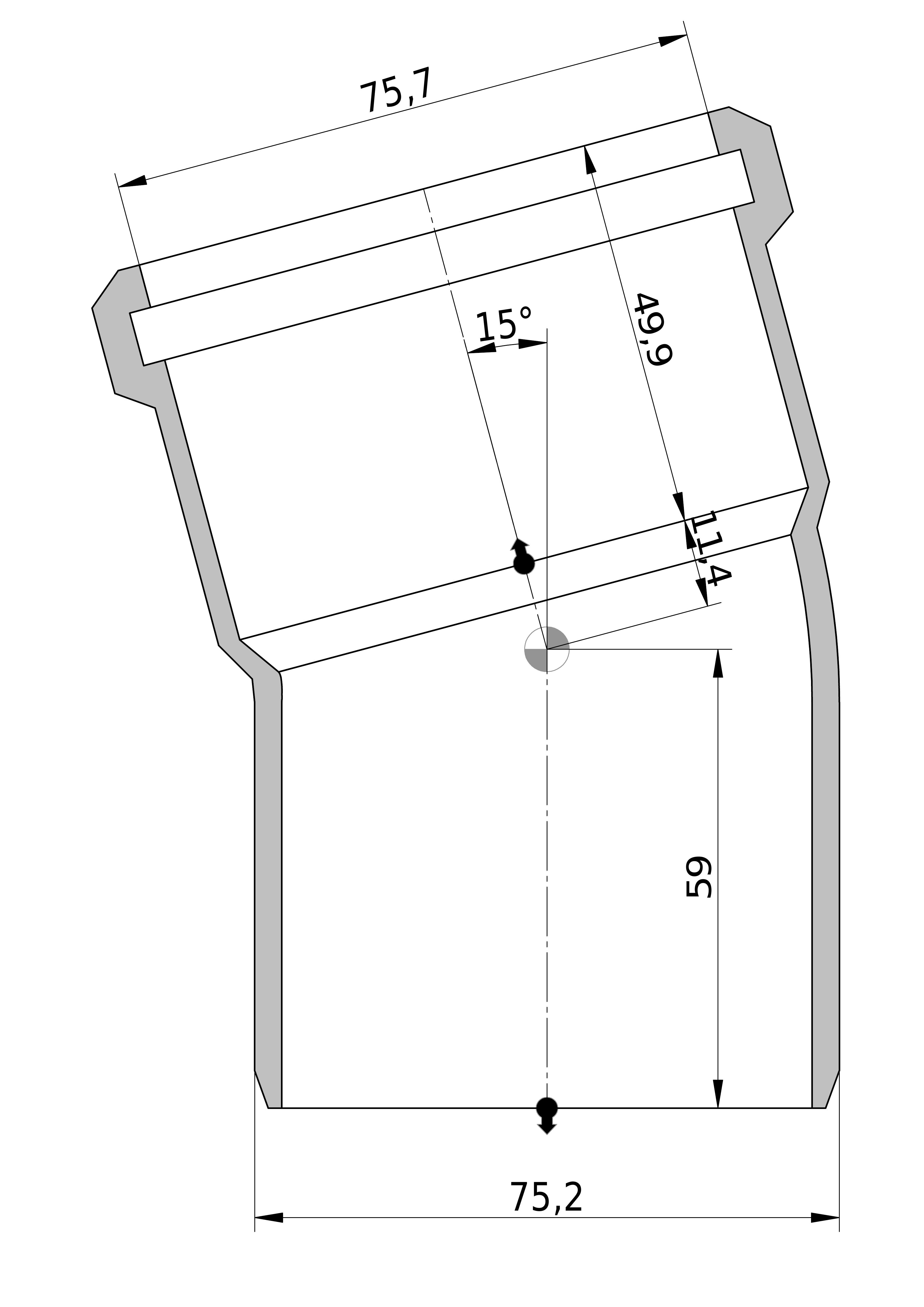 - Uitwendige buisdiameter aansluiting 2: 75 mm