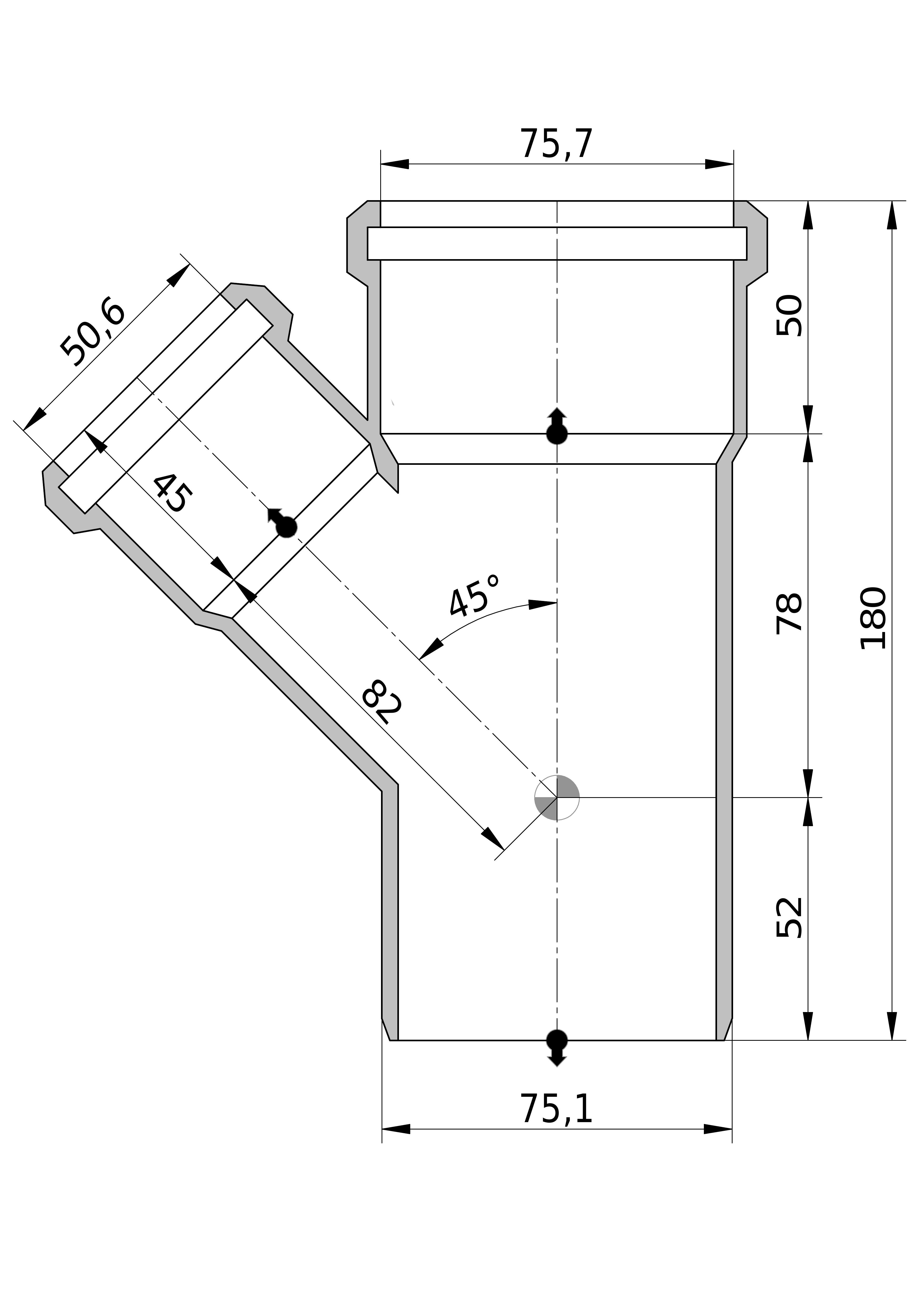 - Uitwendige buisdiameter aansluiting 3: 75 mm