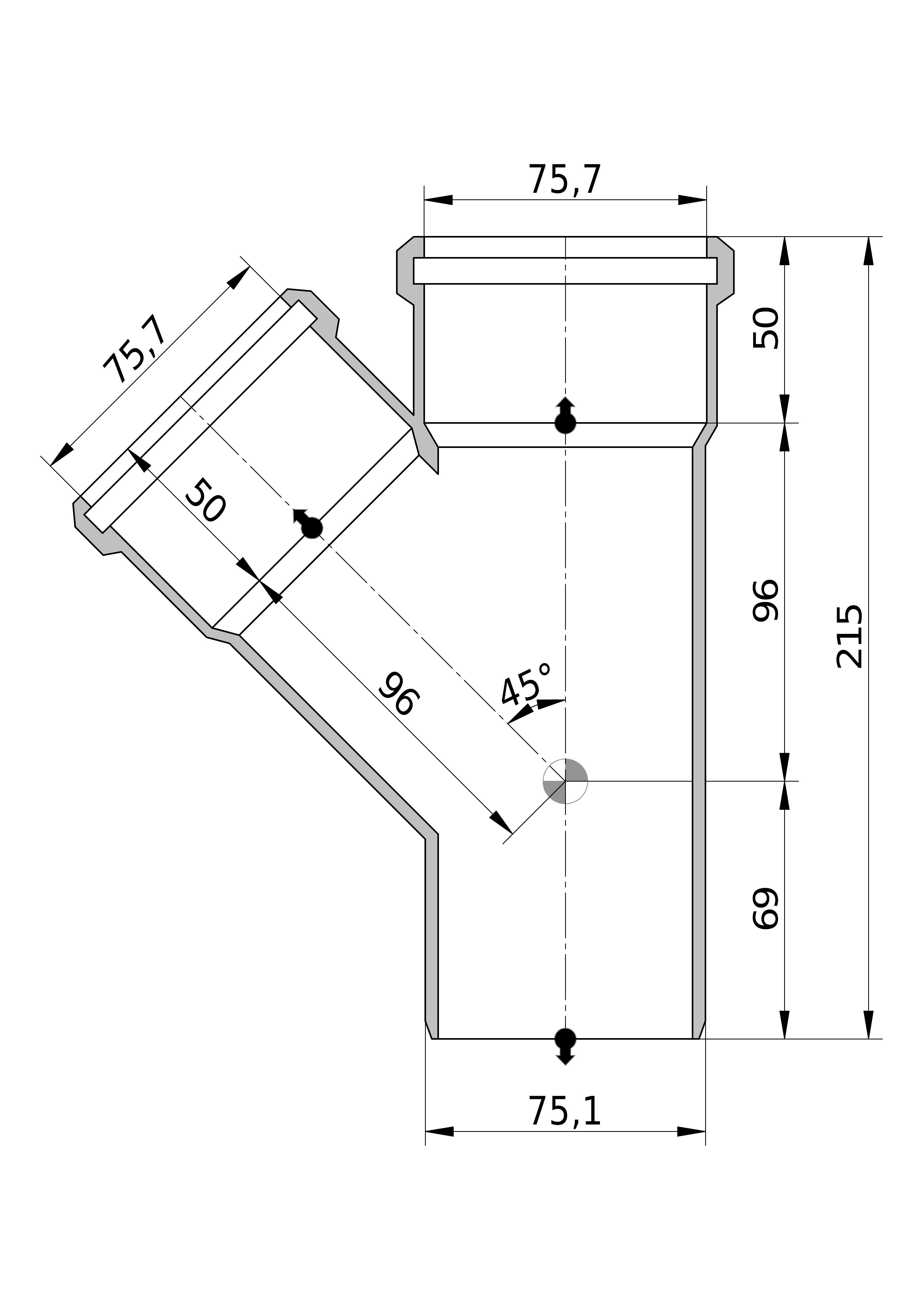 - Uitwendige buisdiameter aansluiting 2: 75 mm