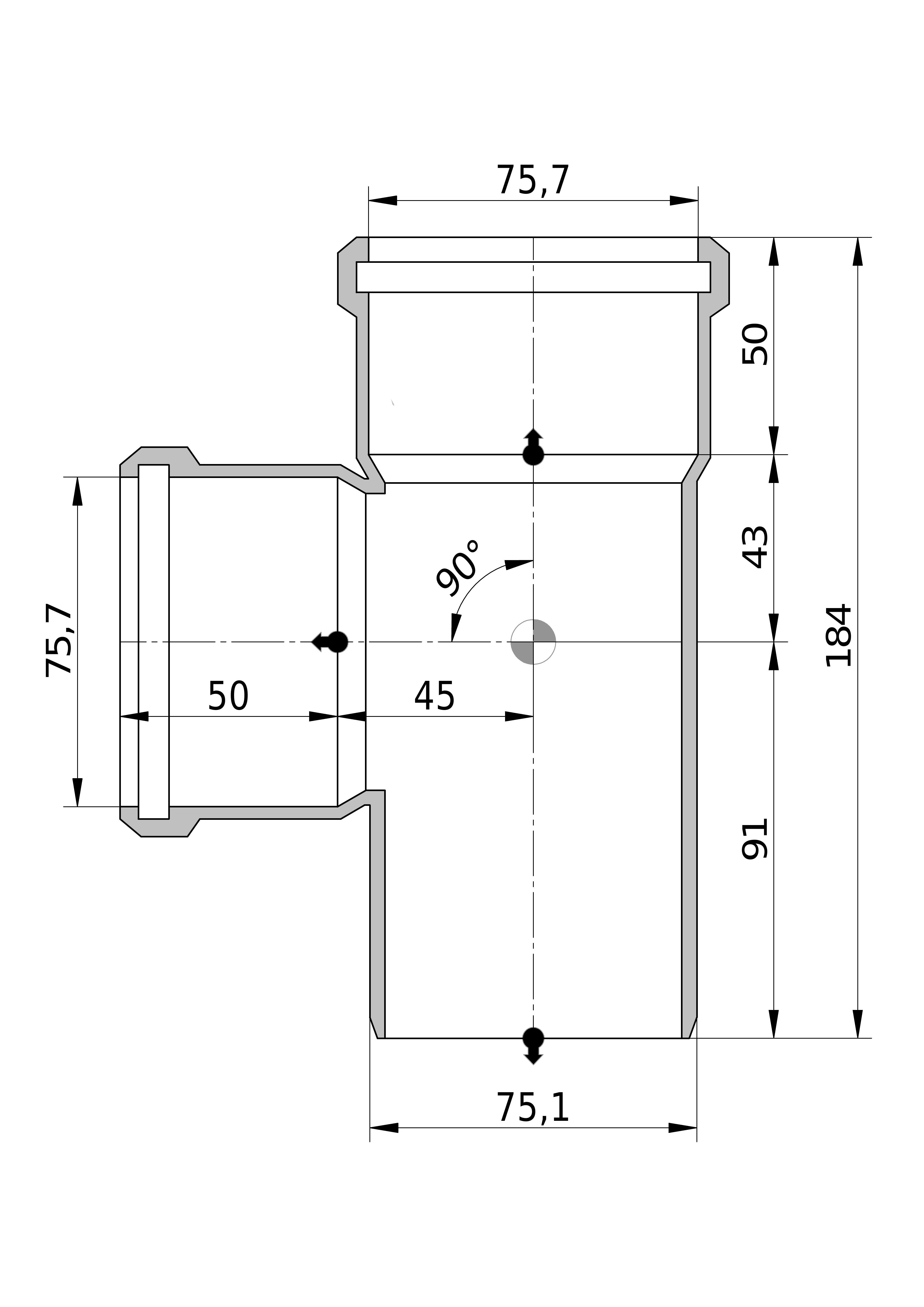 - Uitwendige buisdiameter aansluiting 2: 75 mm