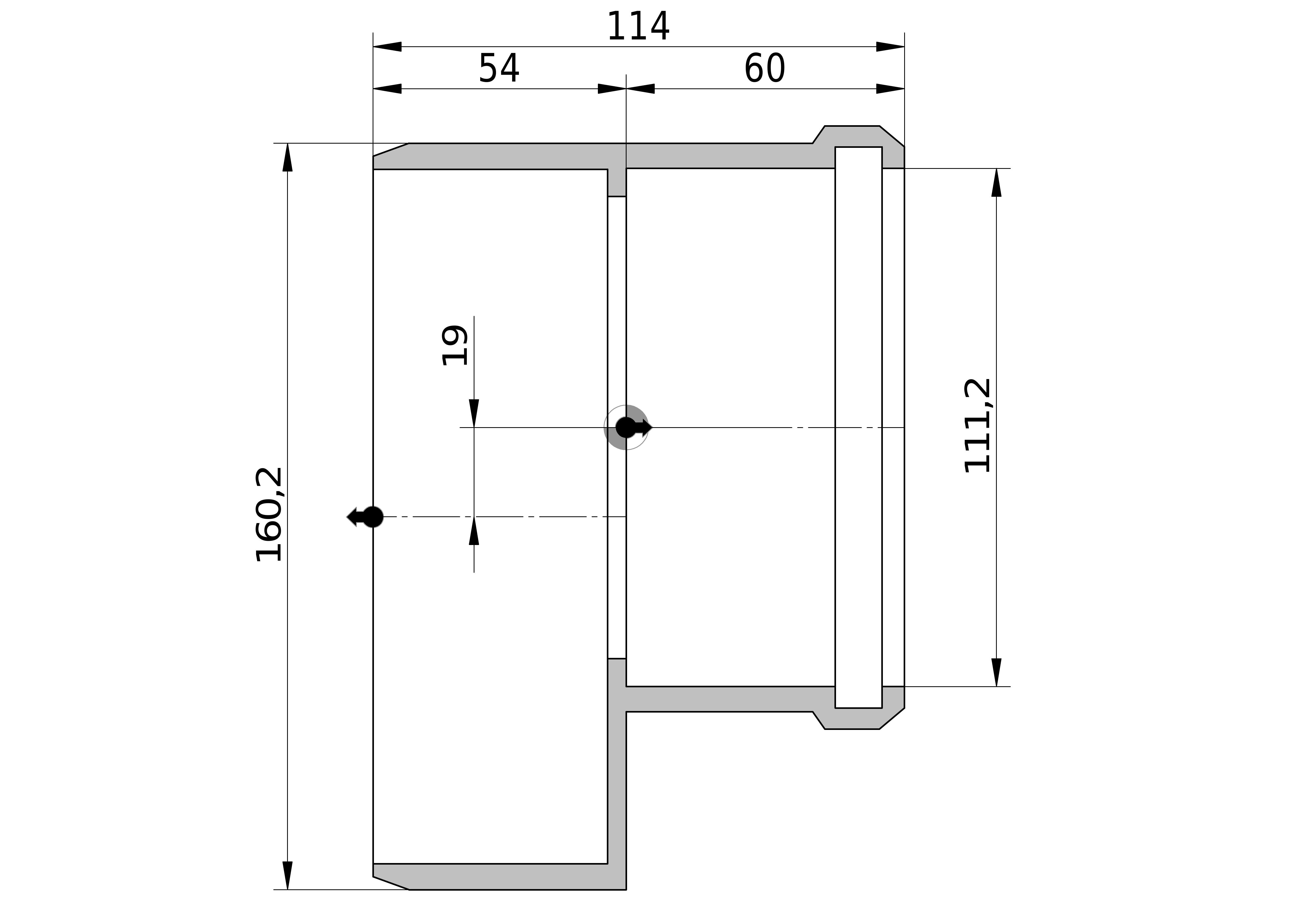 - Lengte aansluiting 2: 114,2 mm