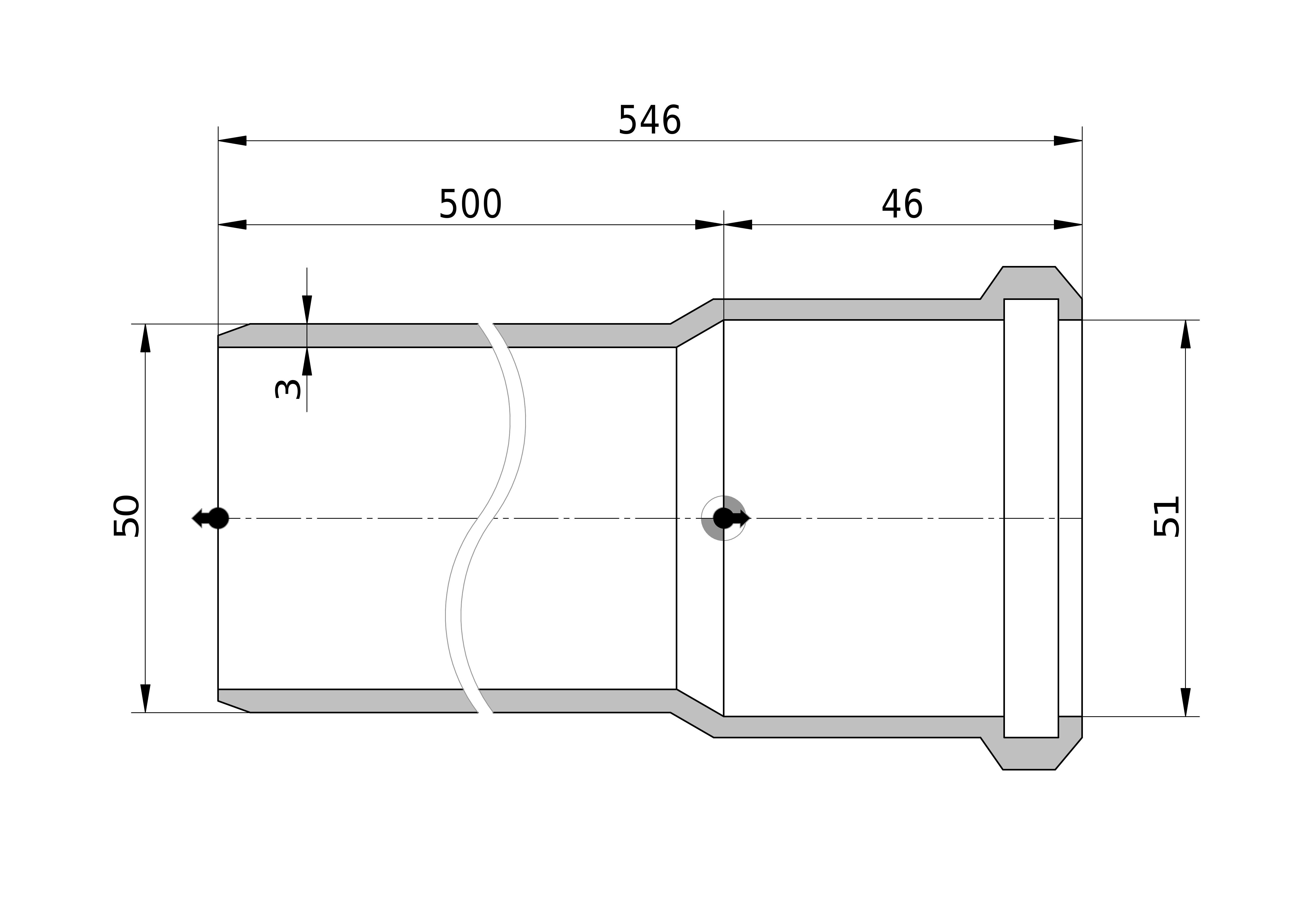 - Uitwendige diameter mantelbuis: 64,7 mm