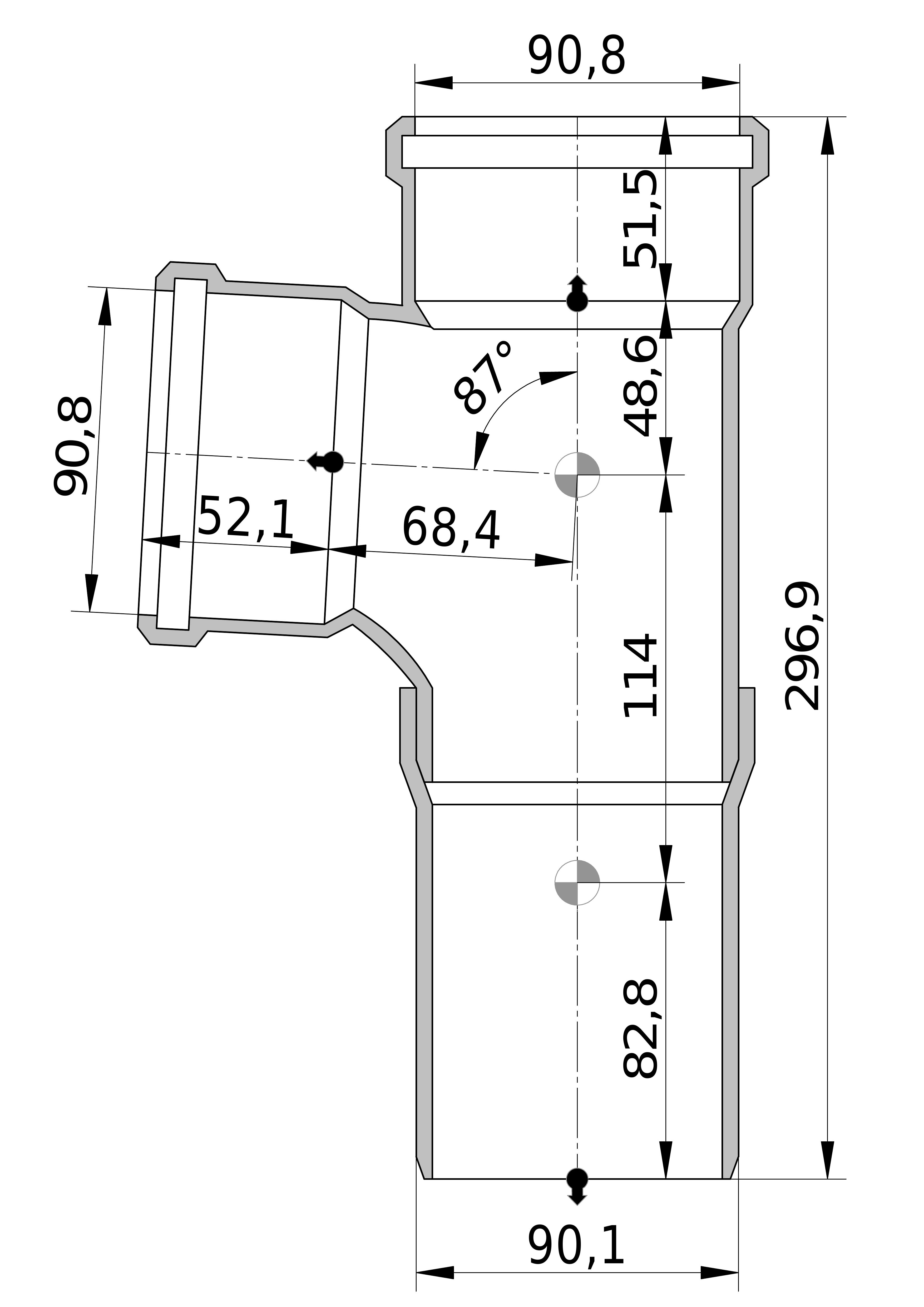 - Nom. diameter aansluiting 3: DN 90