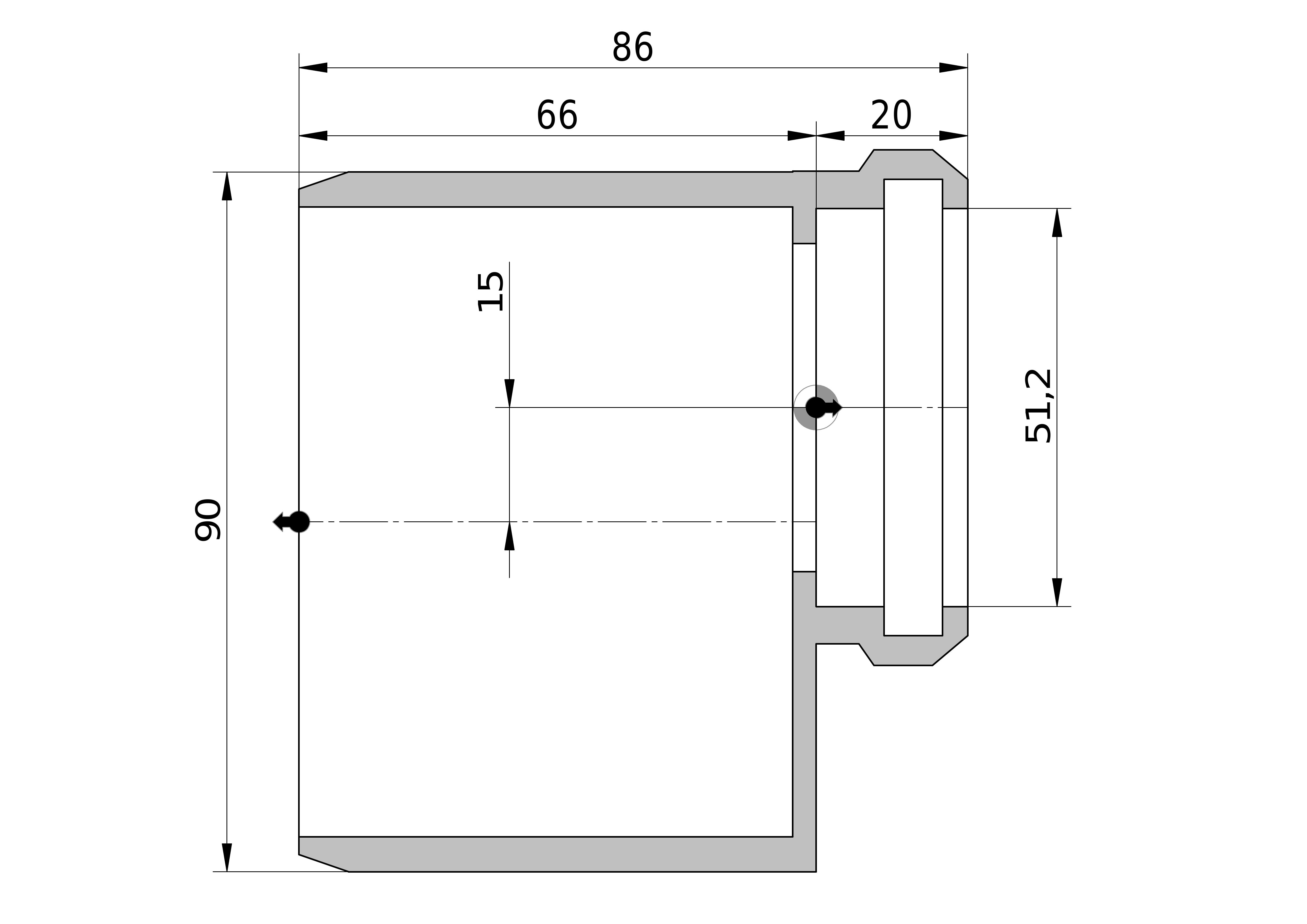- Lengte aansluiting 2: 86 mm