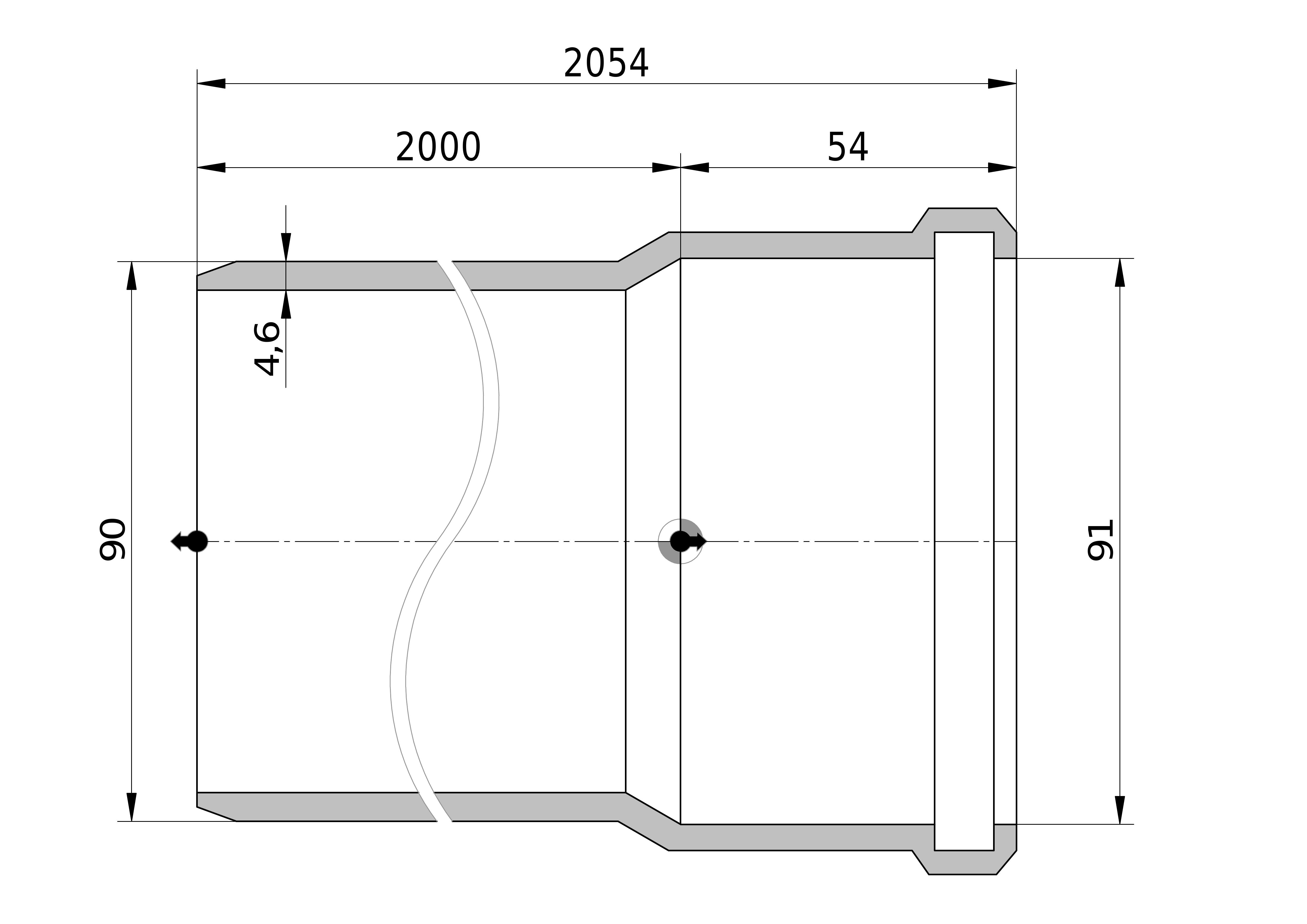 - Uitwendige diameter mantelbuis: 107,1 mm