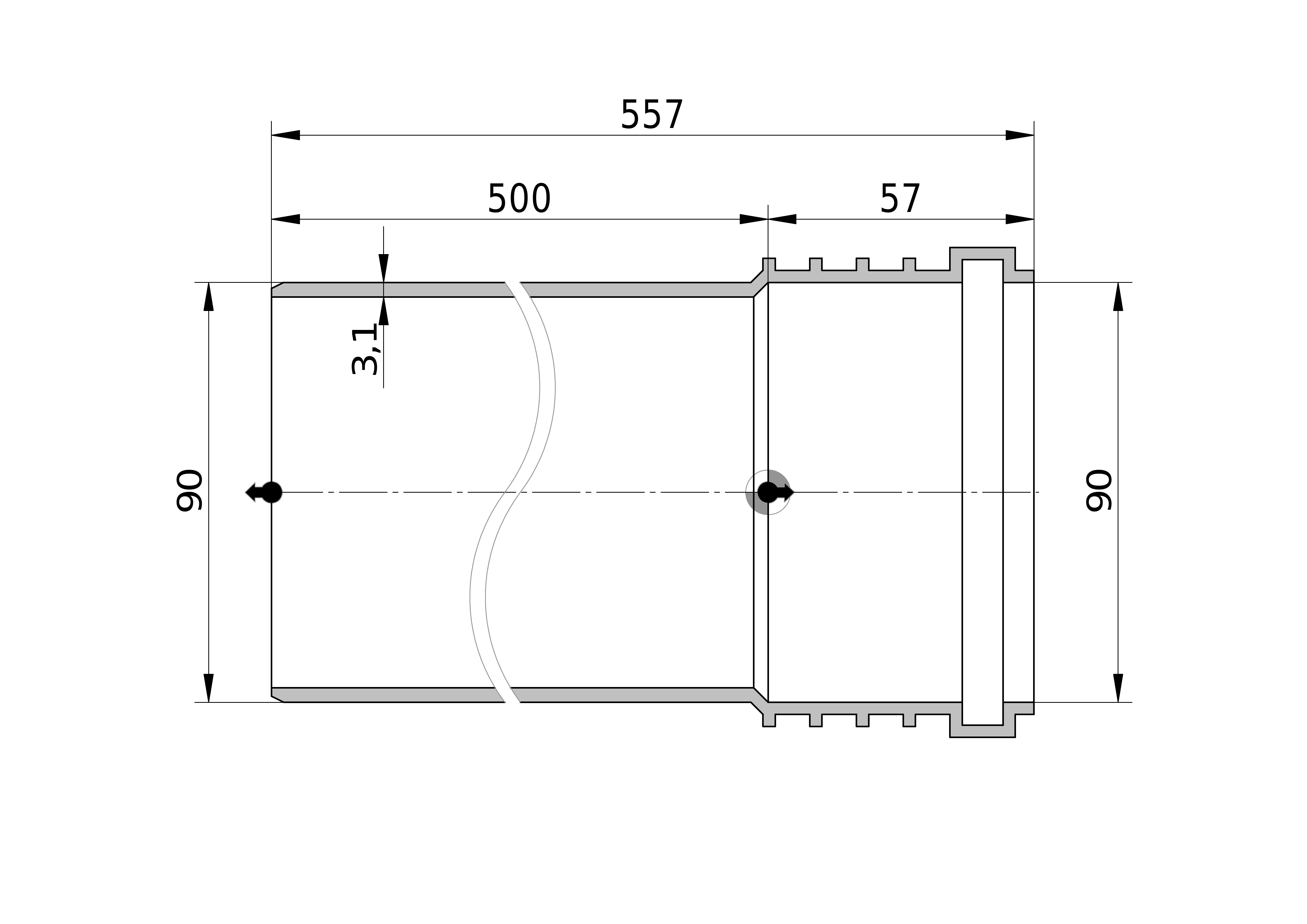 Paslengte Sitech+ geluidsarm PP 90mm l=50cm mof/ spie zwart Wavin
