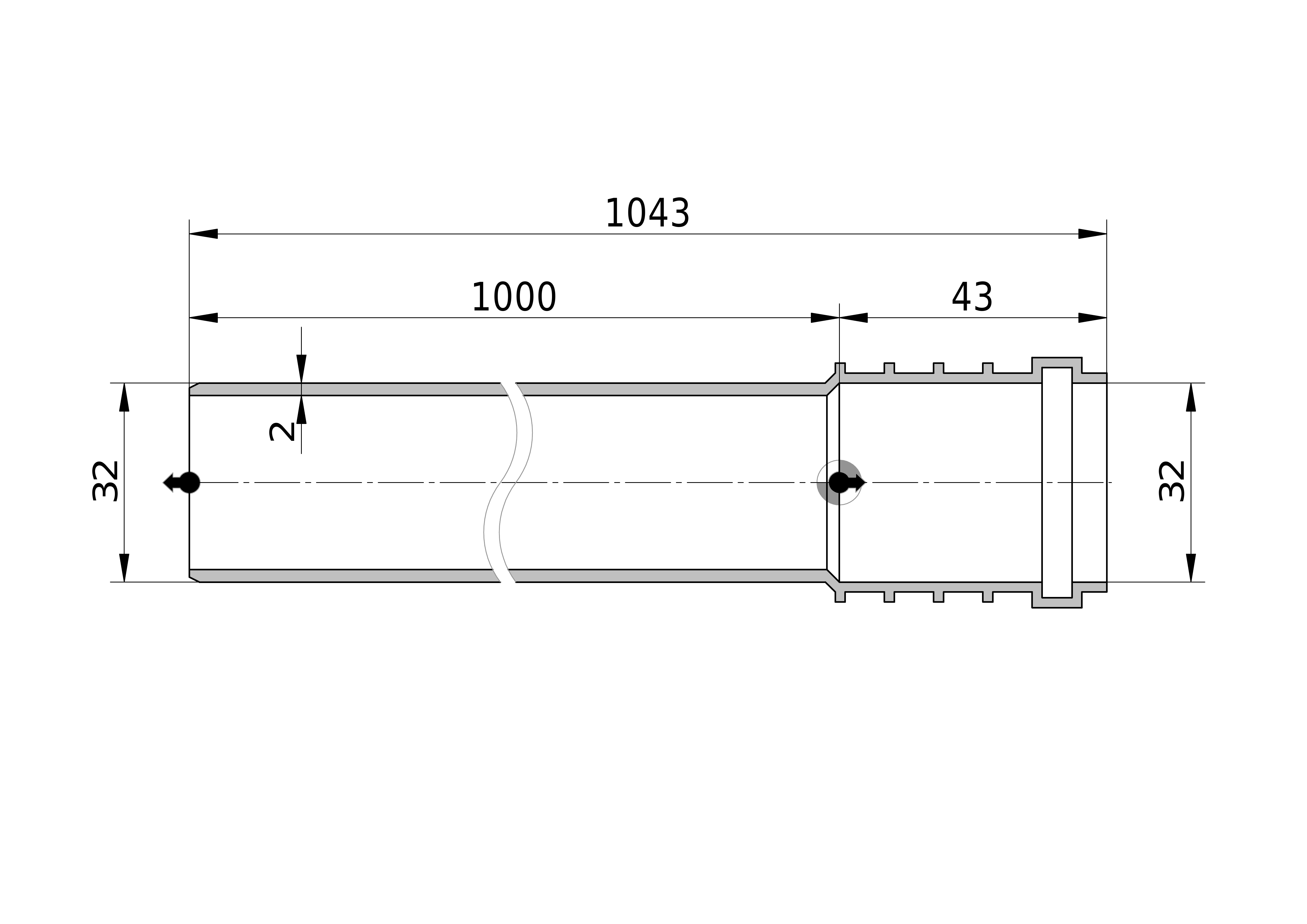 Buis Sitech+ geluidsarm PP 32mm l=100cm mof/spie zwart Wavin