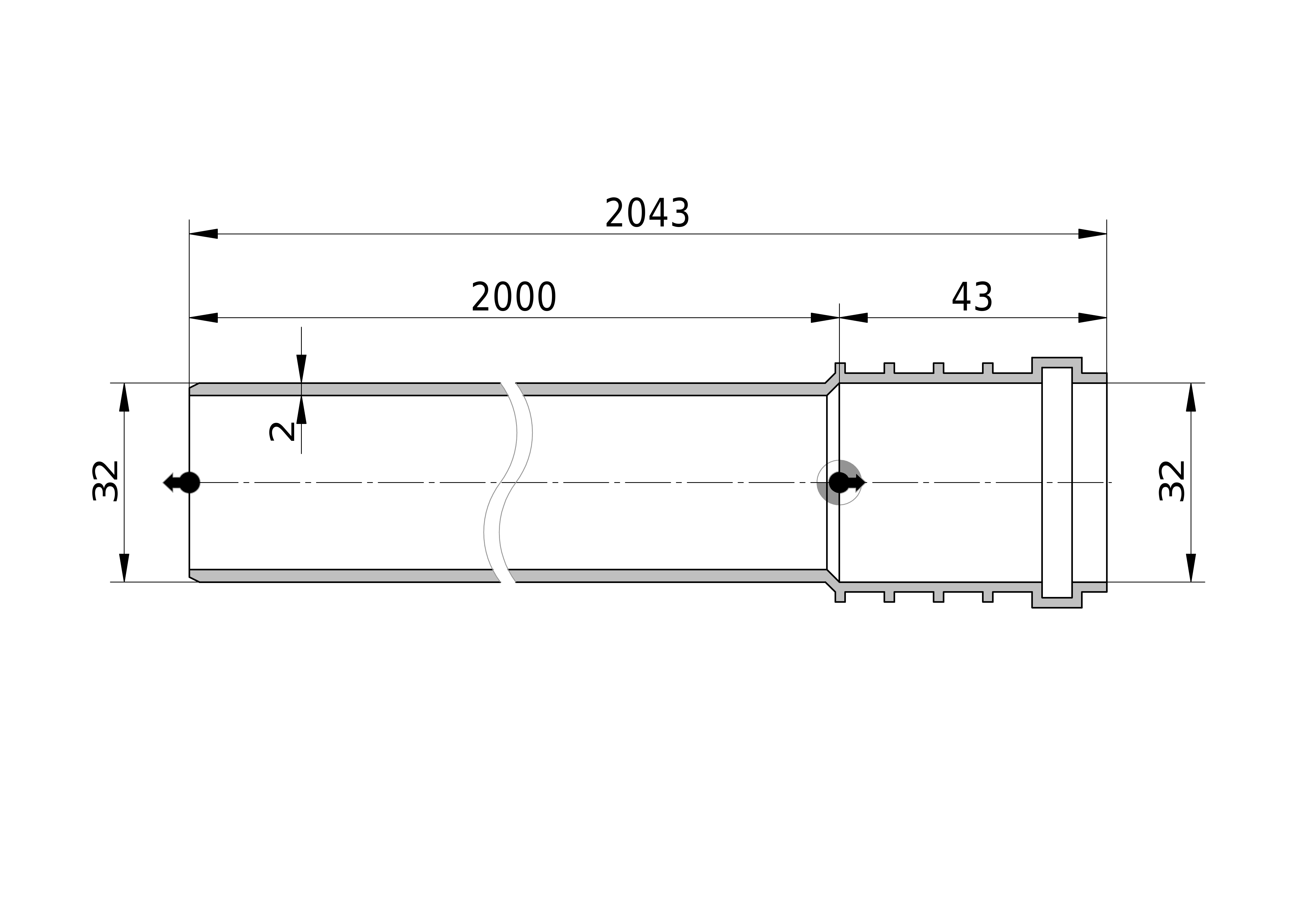 Buis Sitech+ geluidsarm PP 32mm l=200cm mof/spie zwart Wavin