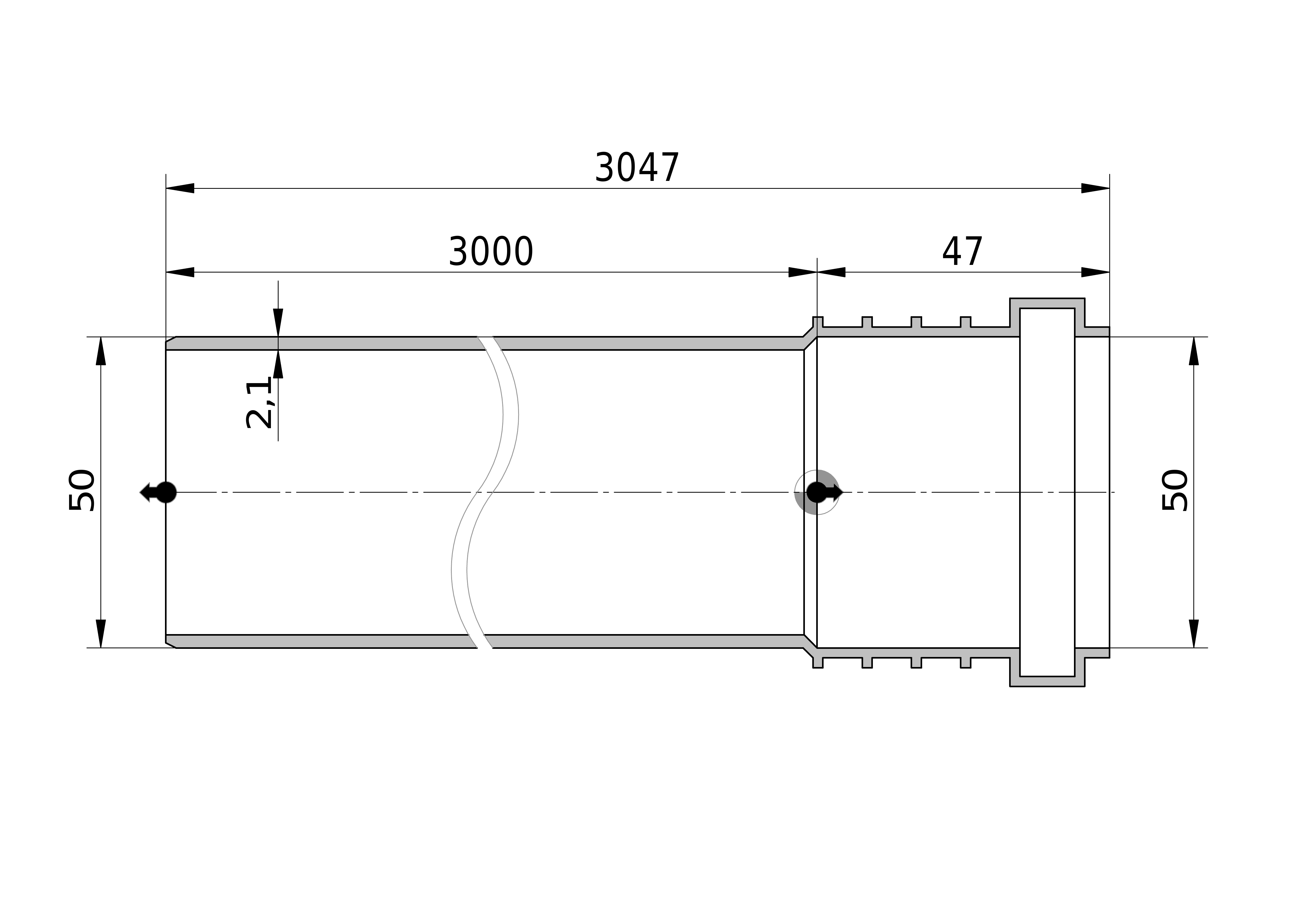 Buis Sitech+ geluidsarm PP 50mm l=300cm mof/spie zwart Wavin