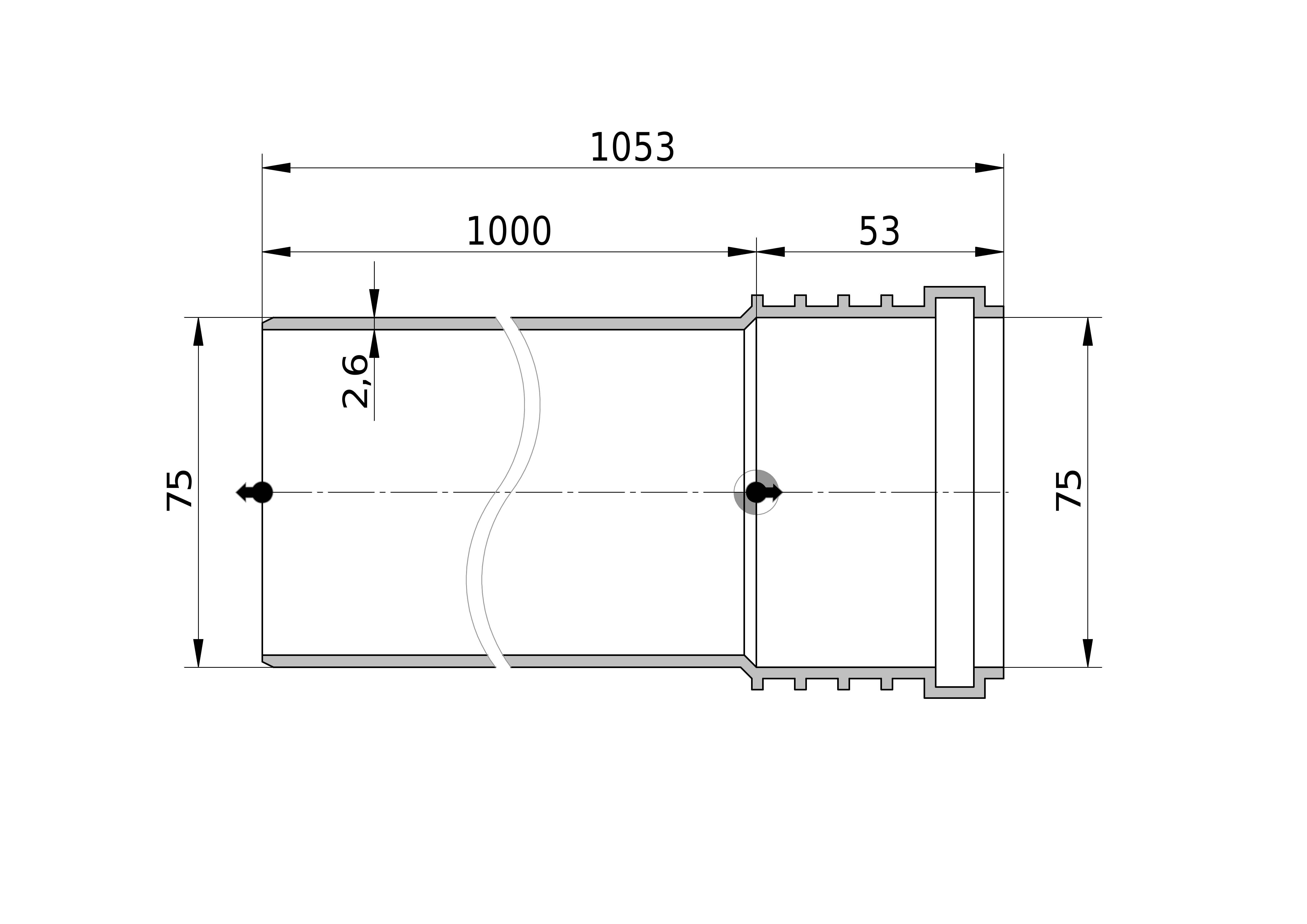 Buis Sitech+ geluidsarm PP 75mm l=100cm mof/spie zwart Wavin