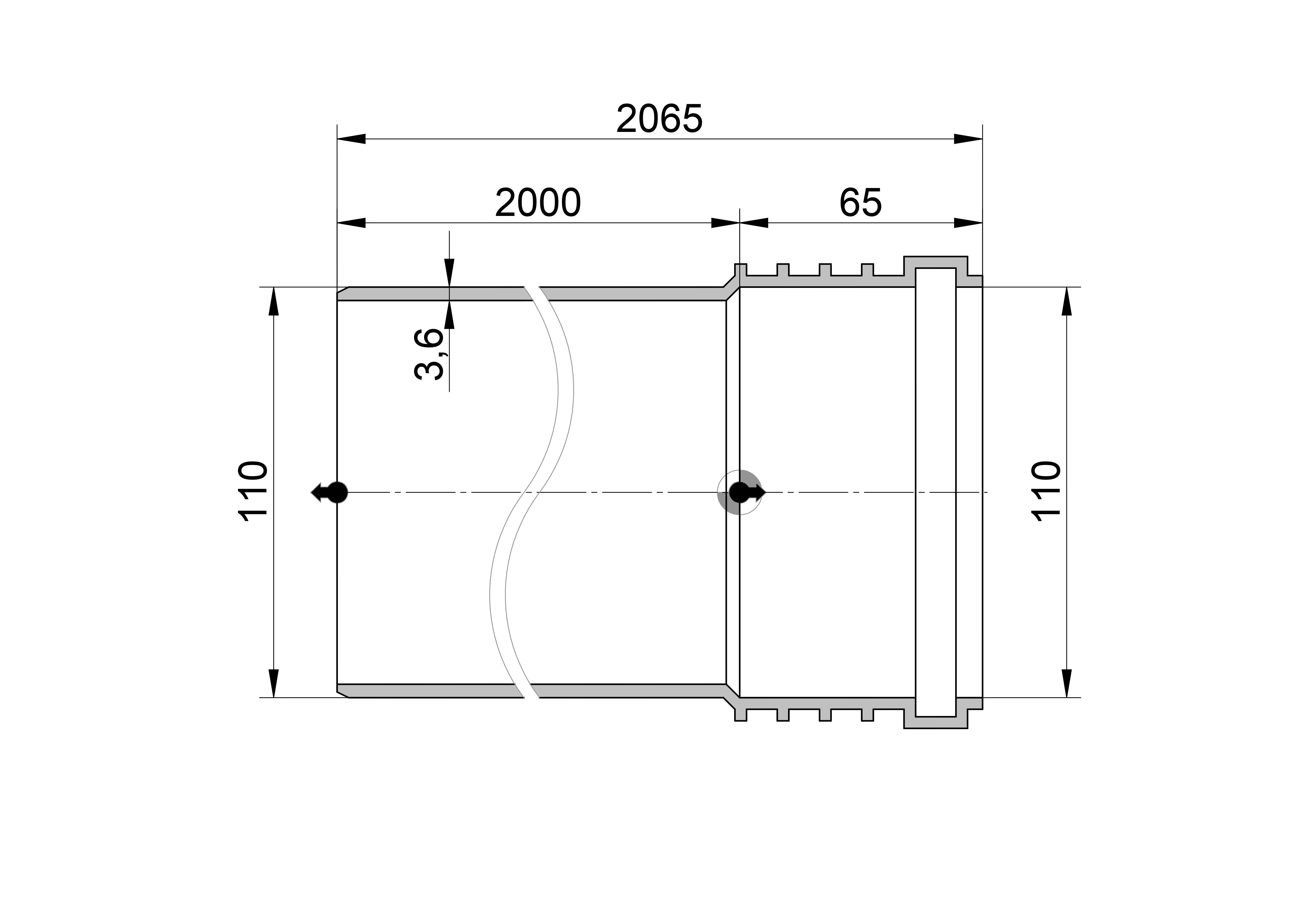 - Uitwendige buisdiameter: 110 mm