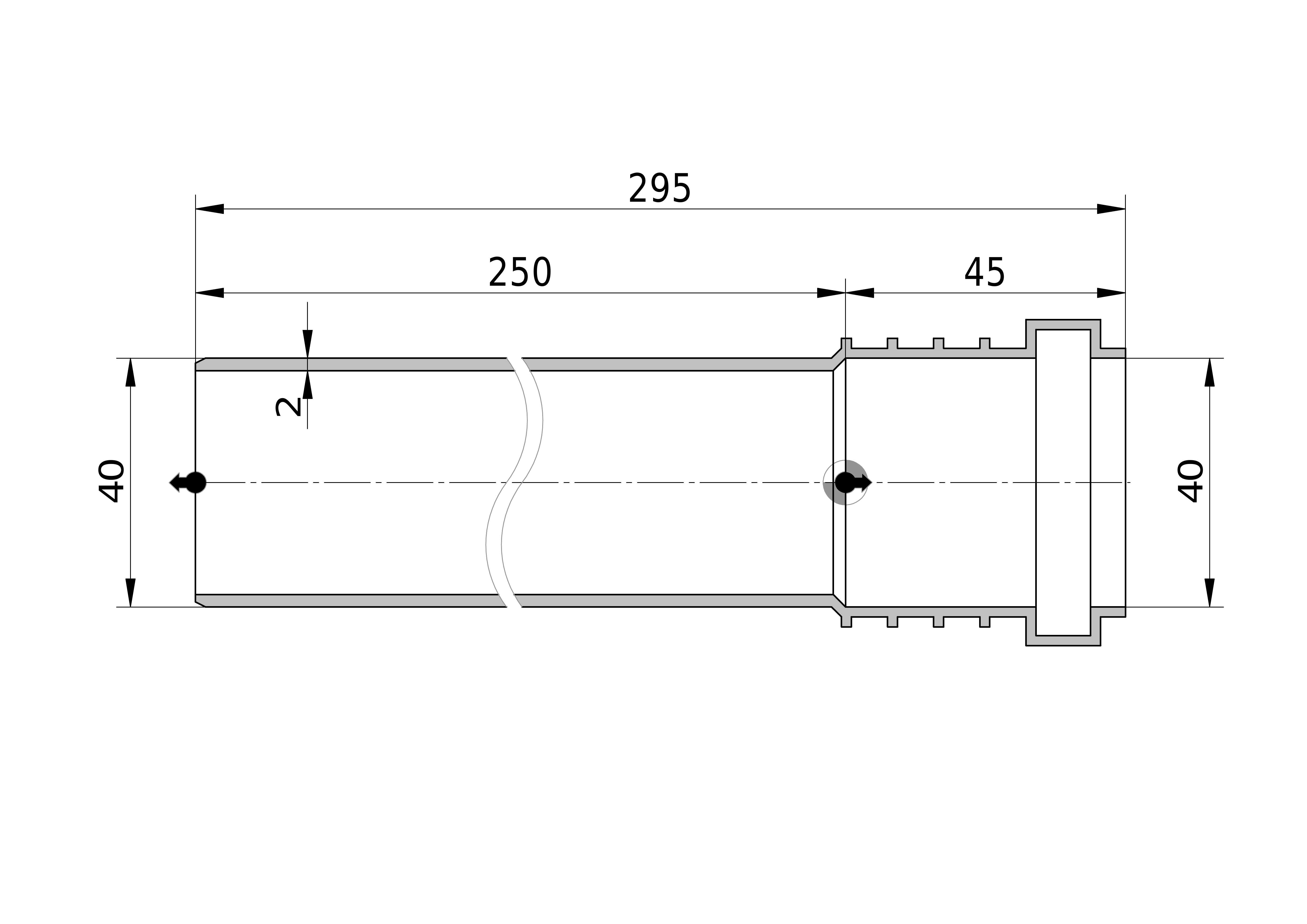 Paslengte Sitech+ geluidsarm PP 40mm l=25cm mof/ spie zwart Wavin