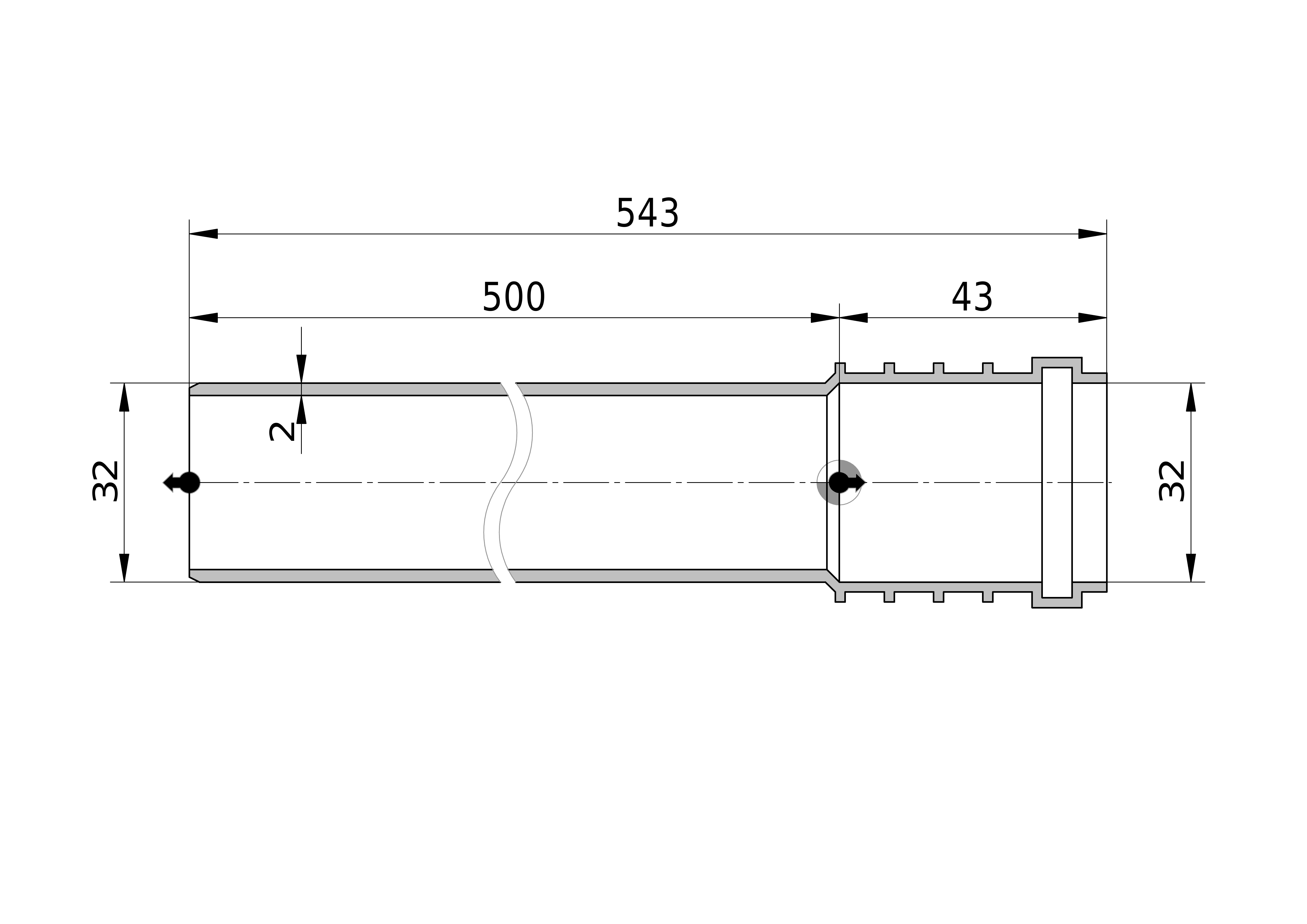 Paslengte Sitech+ geluidsarm PP 32mm l=50cm mof/ spie zwart Wavin