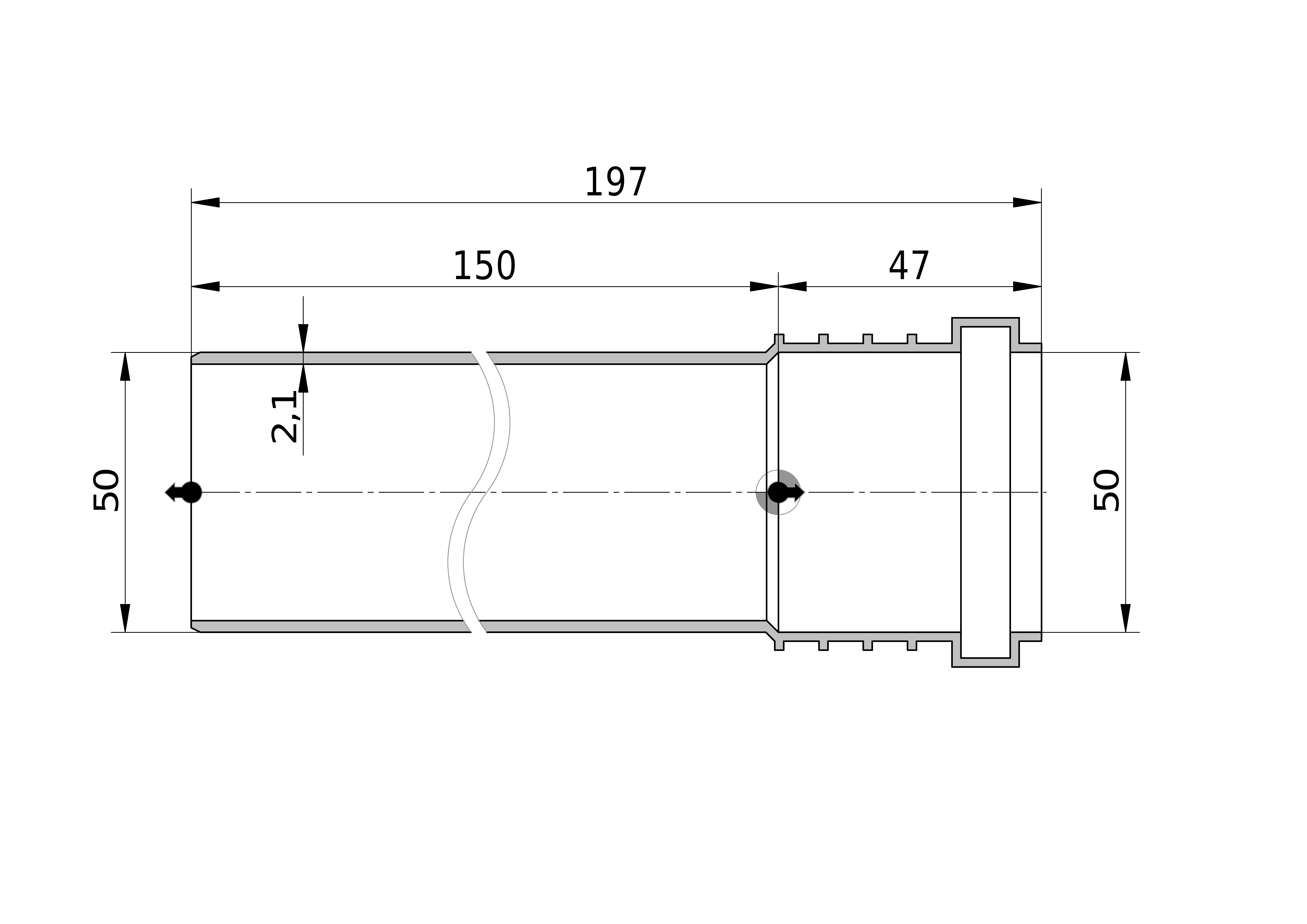 Paslengte Sitech+ geluidsarm PP 50mm l=15cm mof/ spie zwart Wavin