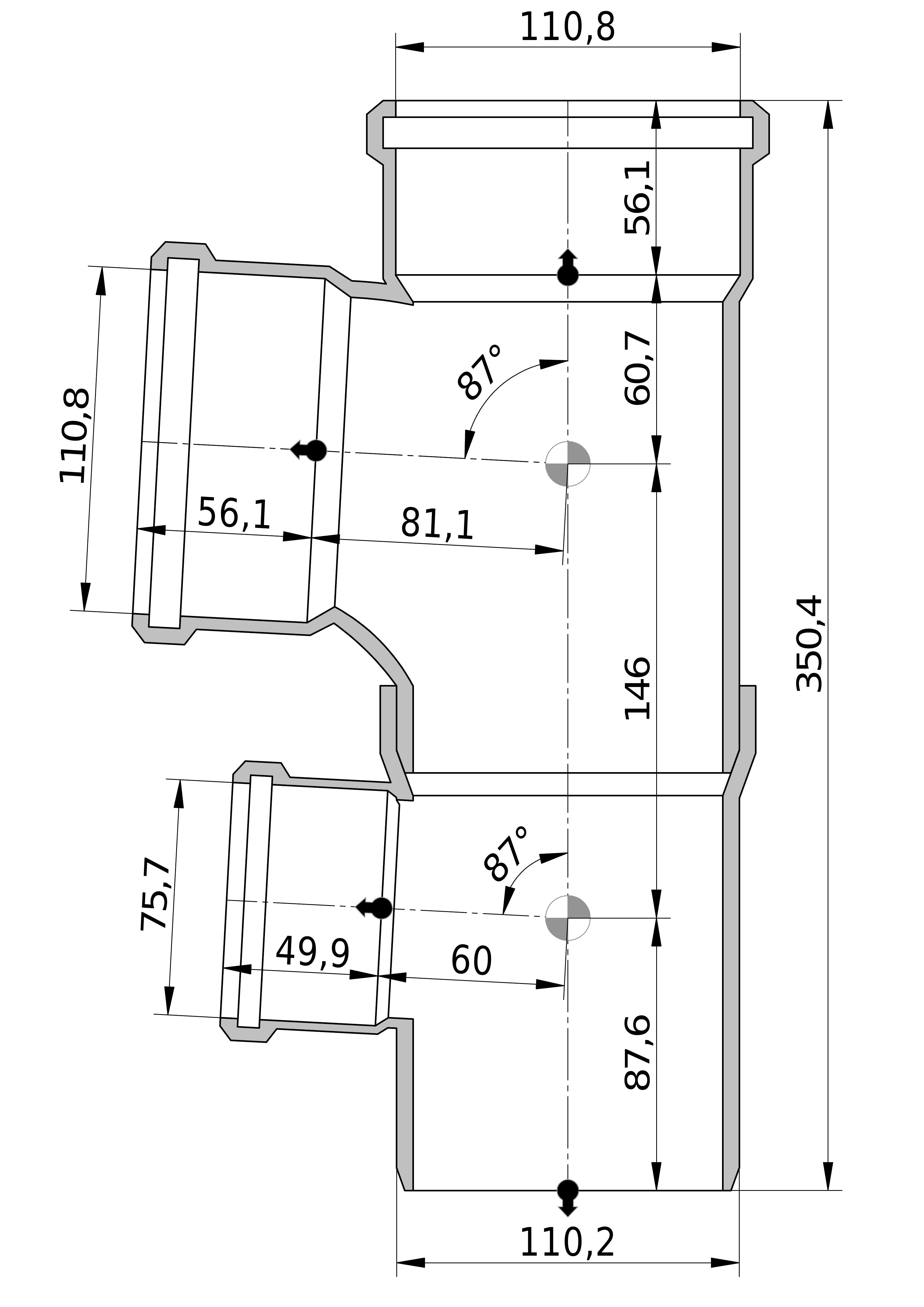 - Uitwendige buisdiameter aansluiting 1: 110,2 mm