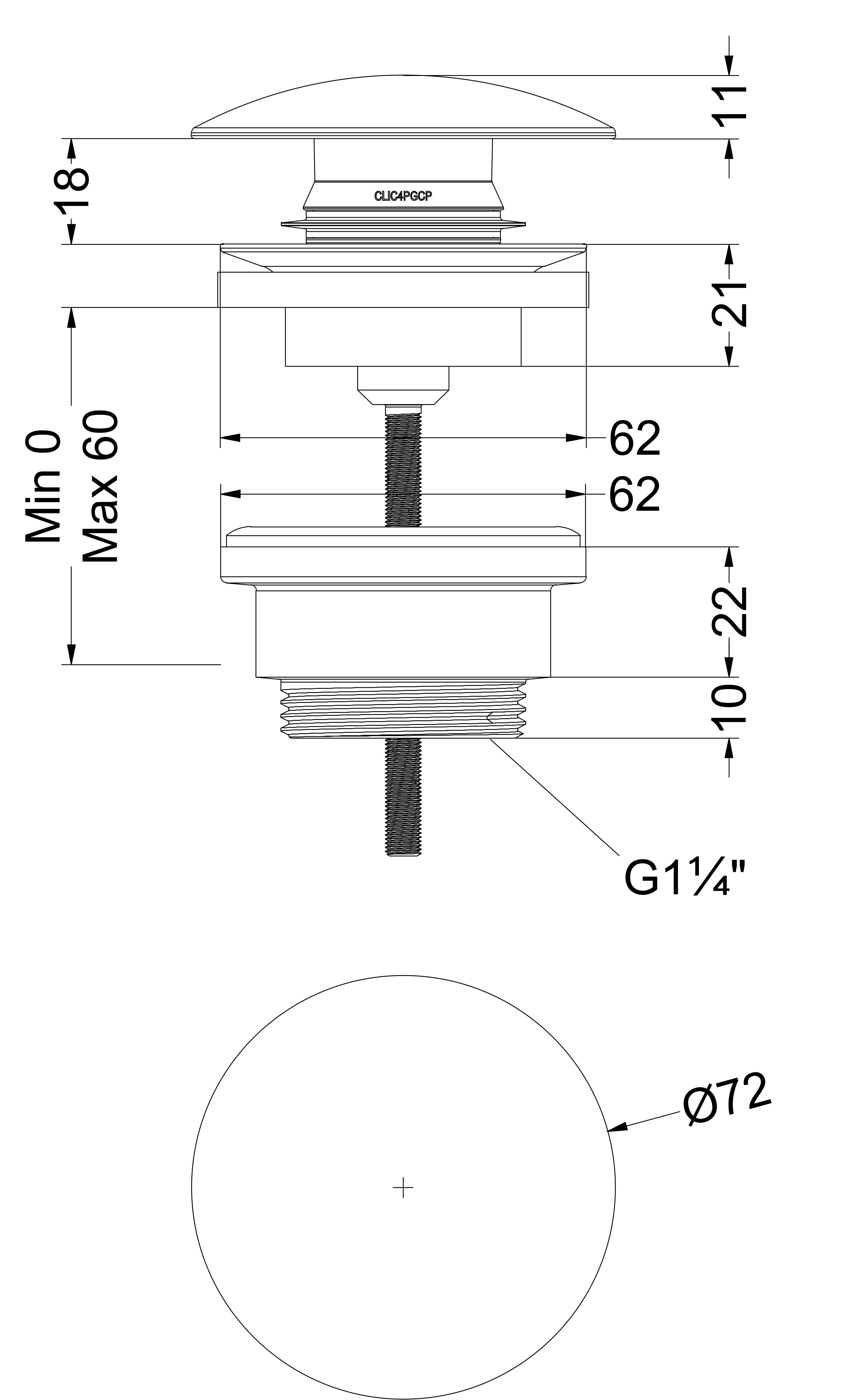 Design afvoerplug 1.1/4" stop & go (Push Open) geborsteld mat goud PVD MAY SANIBELL