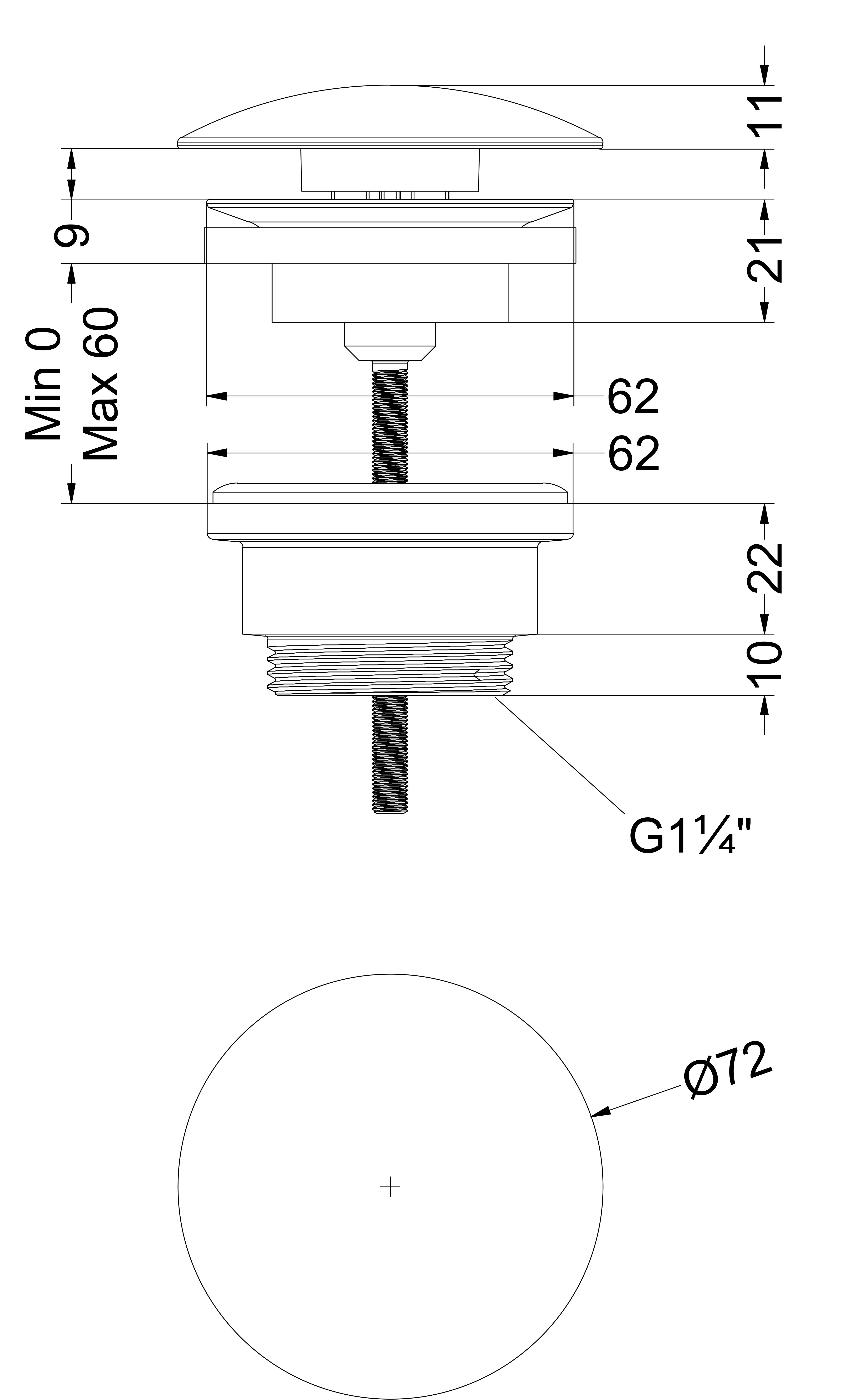 Design afvoerplug 1.1/4" vast (niet afsluitbaar) geborsteld mat goud PVD MAY SANIBELL