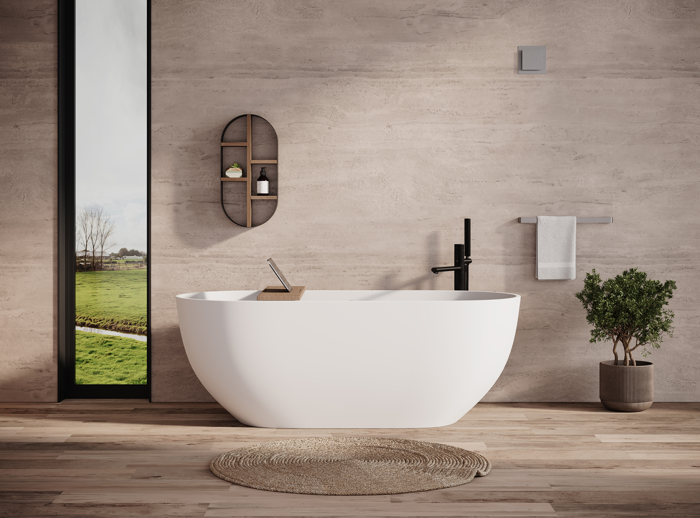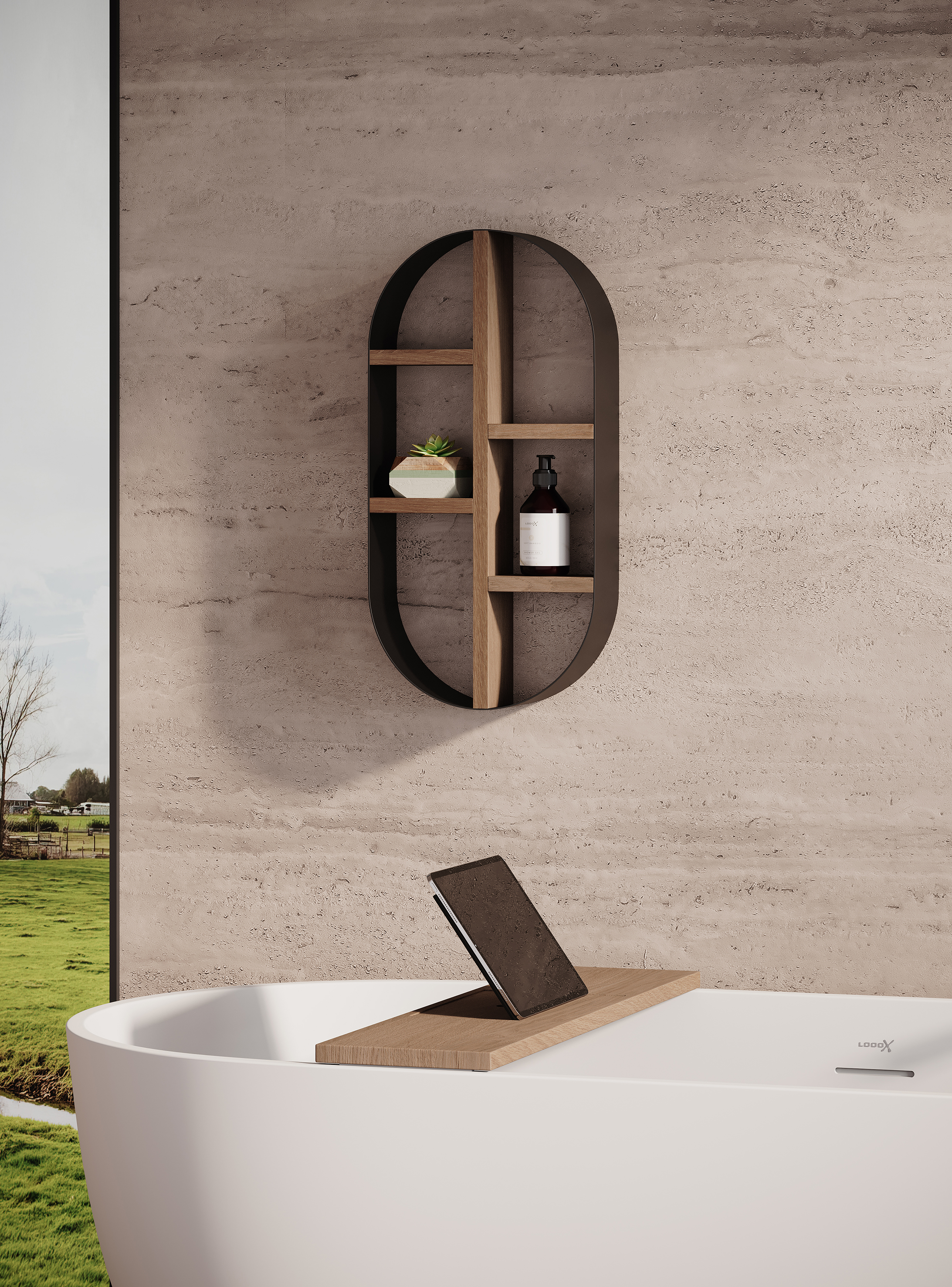 Wandrek WOODEN BOX OVAL 600mm eiken old grey, buitenrand mat zwart LoooX