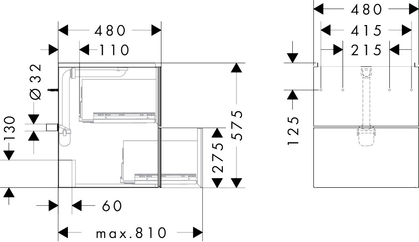 Badmeubel Xevolos E Matt White 480/475+2L MeW TDG hansgrohe