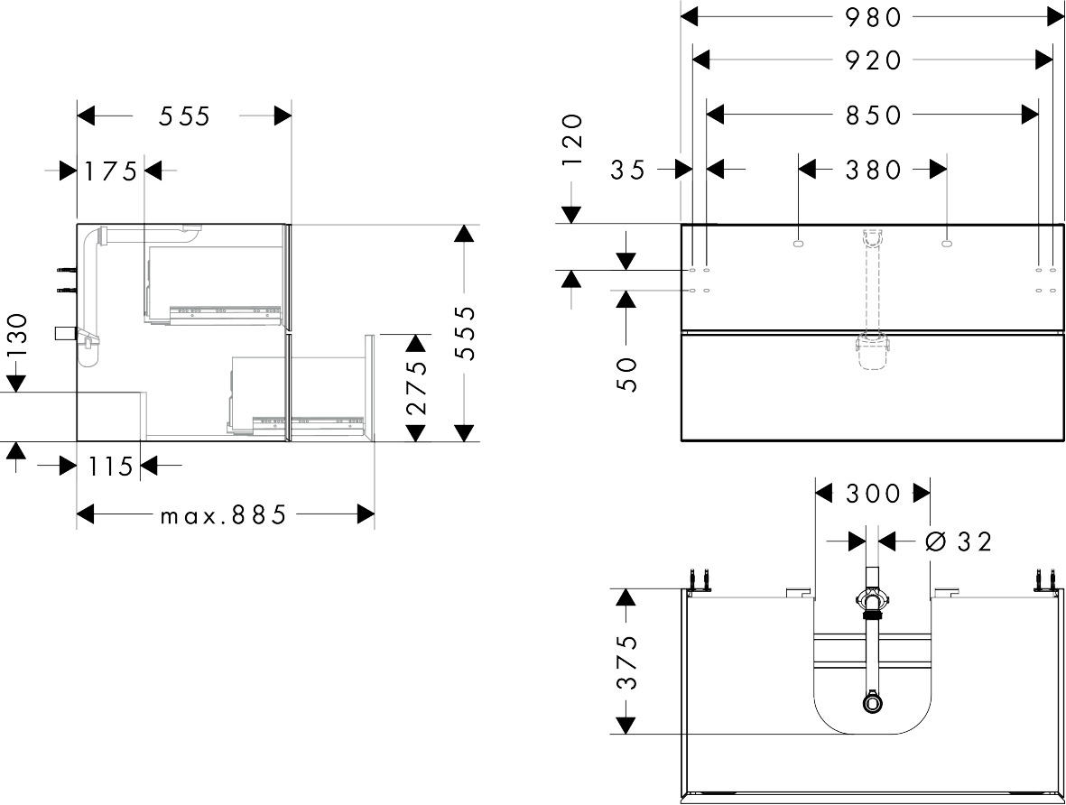 Badmeubel Xevolos E mat wit 980/550 2L inbouwwastafel TDG hansgrohe