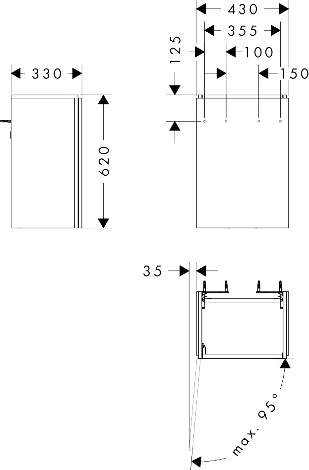 Badmeubel Xilesa E 430/330 fontein scharnier links mat wit hansgrohe