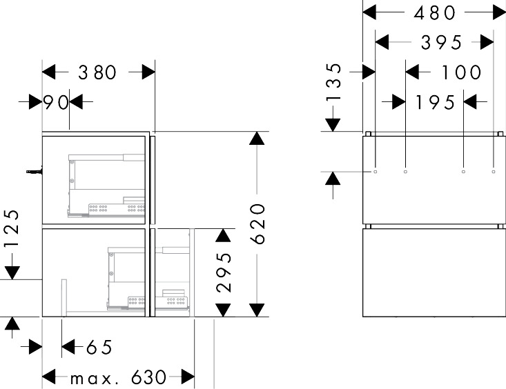 Badmeubel Xilesa E 480/380+2 lades fontein Cashmere Oak hansgrohe