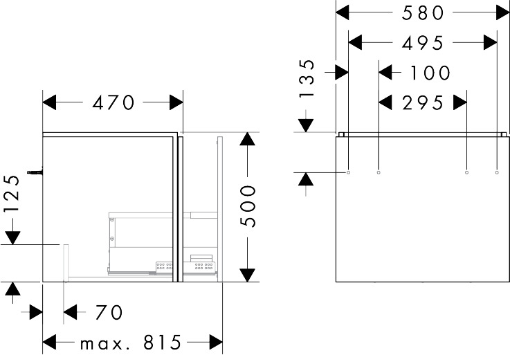 Badmeubel Xilesa E 580/470+1 lade wastafel Cashmere Oak hansgrohe