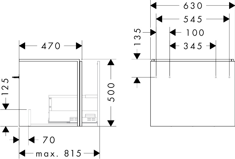 Badmeubel Xilesa E 630/470+1 lade wastafel mat wit hansgrohe