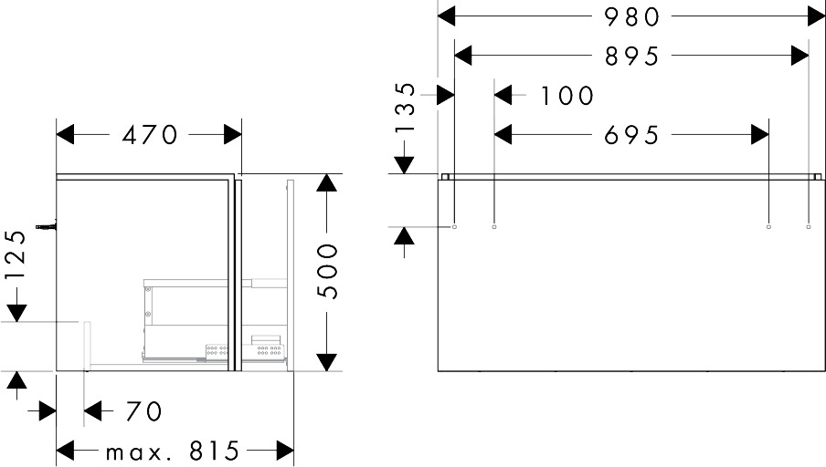 Badmeubel Xilesa E 980/470+1 lade wastafel Sand Matt Beige hansgrohe