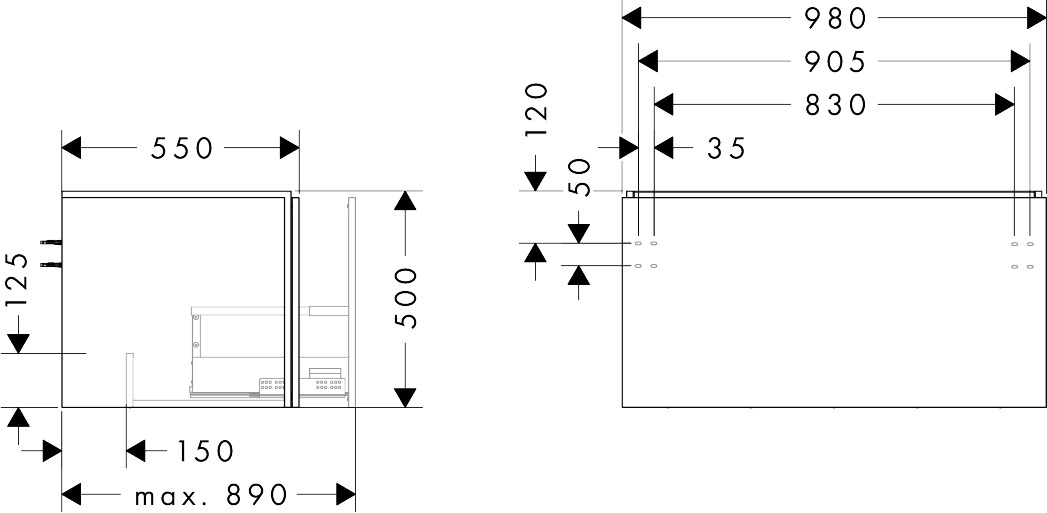 Badmeubel Xilesa E 980/550 1 lade waskom/gesl. wastafel CAO hansgrohe