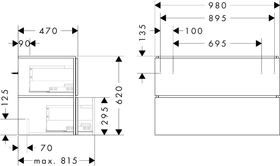 Badmeubel Xilesa E 980/470+2 lades PushOpen wastafel CAO hansgrohe