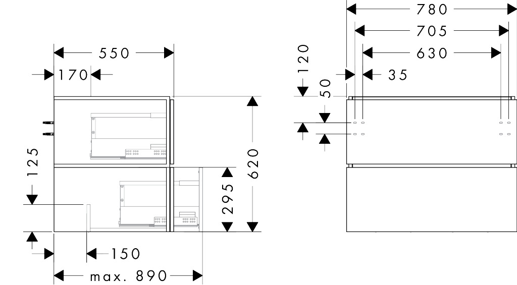 Badmeubel Xilesa E 780/550 2 lades waskom/gesl. wastafel CAO hansgrohe