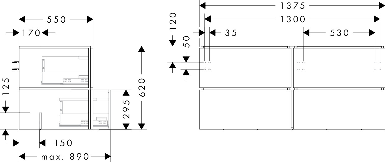 Badmeubel Xilesa E 1375/550 4 lades waskom/gesl wastafel Slate Matt Grey hansgrohe