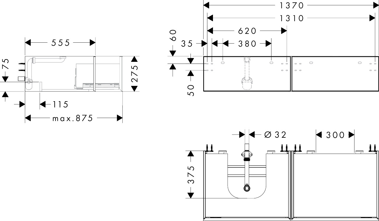 Badmeubel Xevolos E mat wit 1370/550 2L waskom/gesl. LI. Metallic White hansgrohe