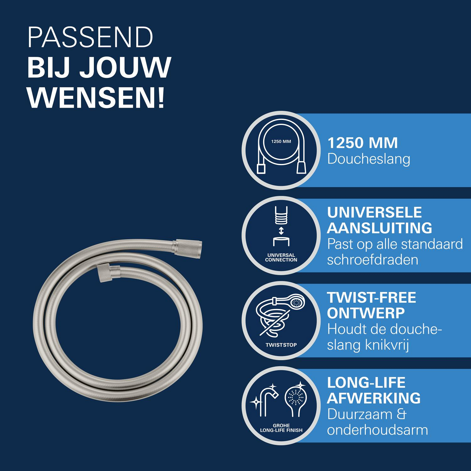 Doucheslang silverflex kunststof 1250mm 1/2" supersteel (rvs look) (prof) Grohe