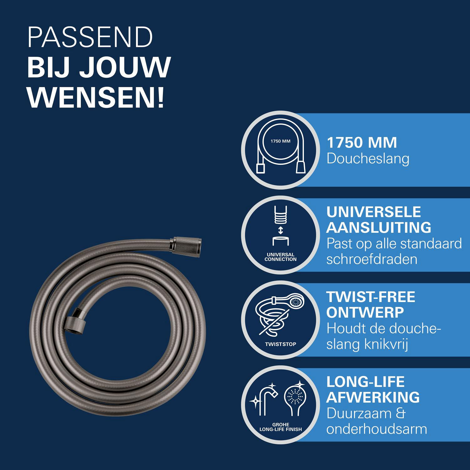 Doucheslang silverflex kunststof 1750mm 1/2 hard graphite (donker grijs) Grohe