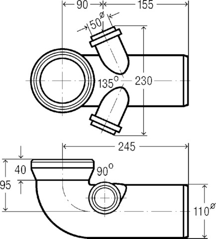 - Uitwendige buisdiameter aansluiting 1: 110 mm