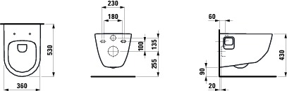 Wandcloset diepspoel rimless met bev.gaten zijkant lcc-wit (excl. zitting) Laufen