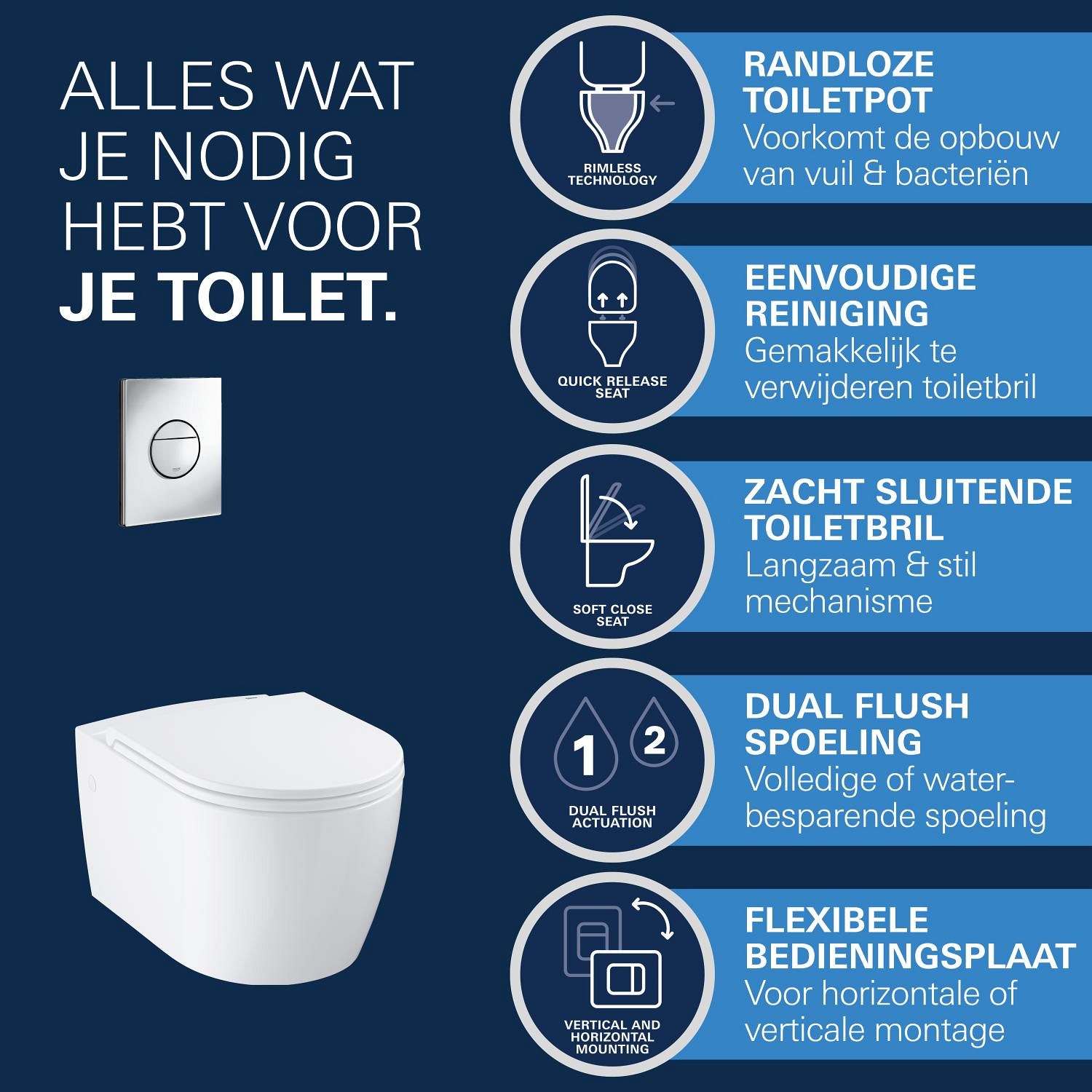 Wandcloset combipack 5-in-1 Start Round Sail Solido incl. inb.reservoir 113cm+bedienplaat+zitting (1pc) Grohe