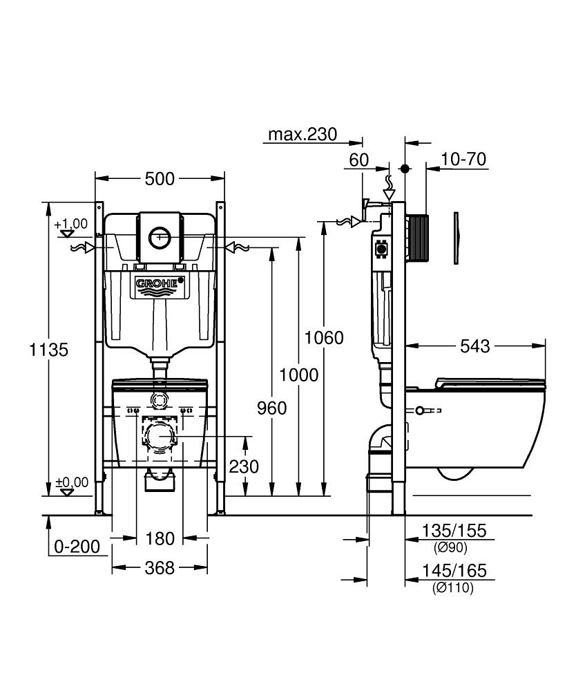 Wandcloset combipack 5-in-1 Start Round Sail incl. inb.reservoir 113cm+bedienplaat+zitting (2pc) Grohe