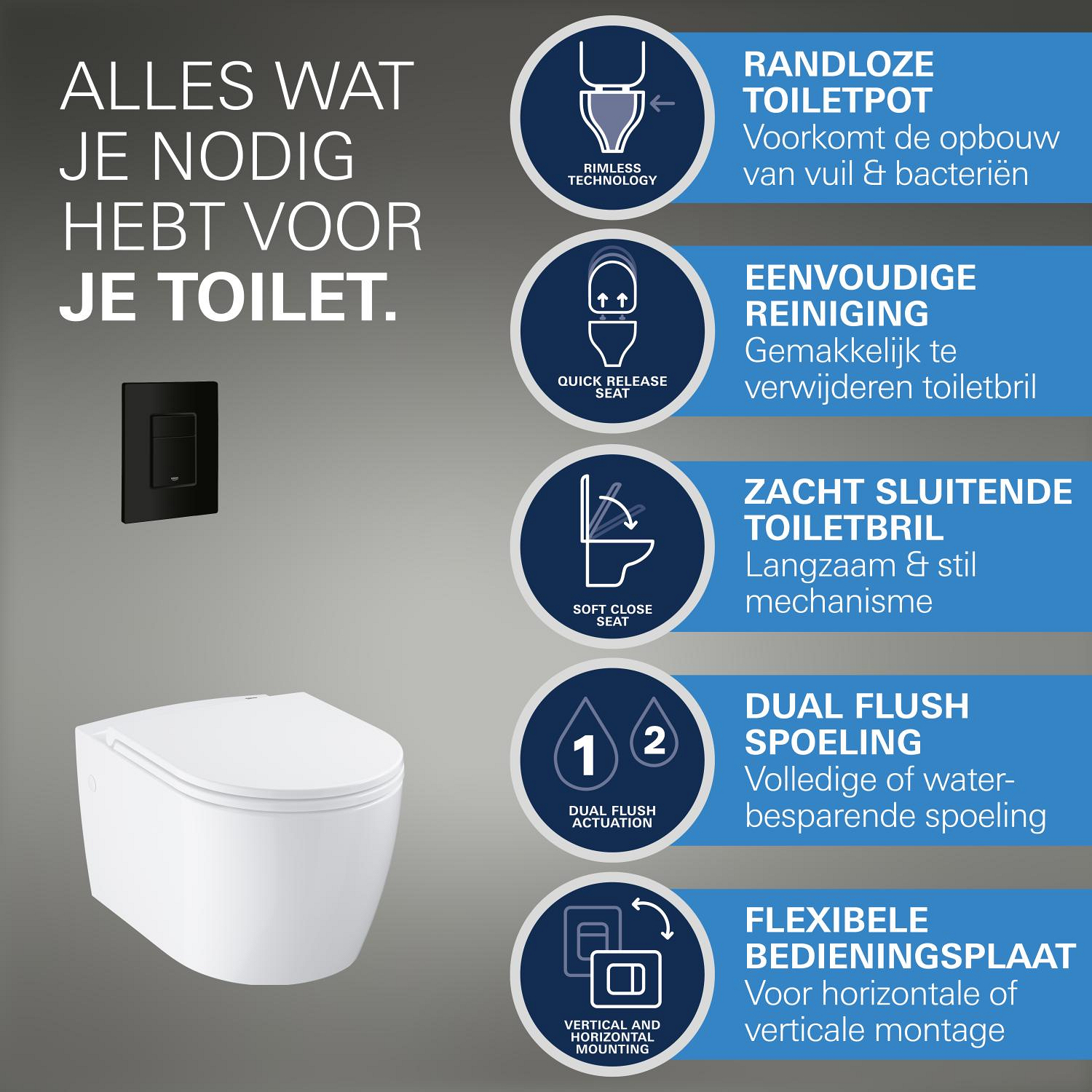 Wandcloset combipack 5-in-1 Start Round Even incl. inb.reservoir 113cm+bedienplaat+zitting (1pc) Grohe