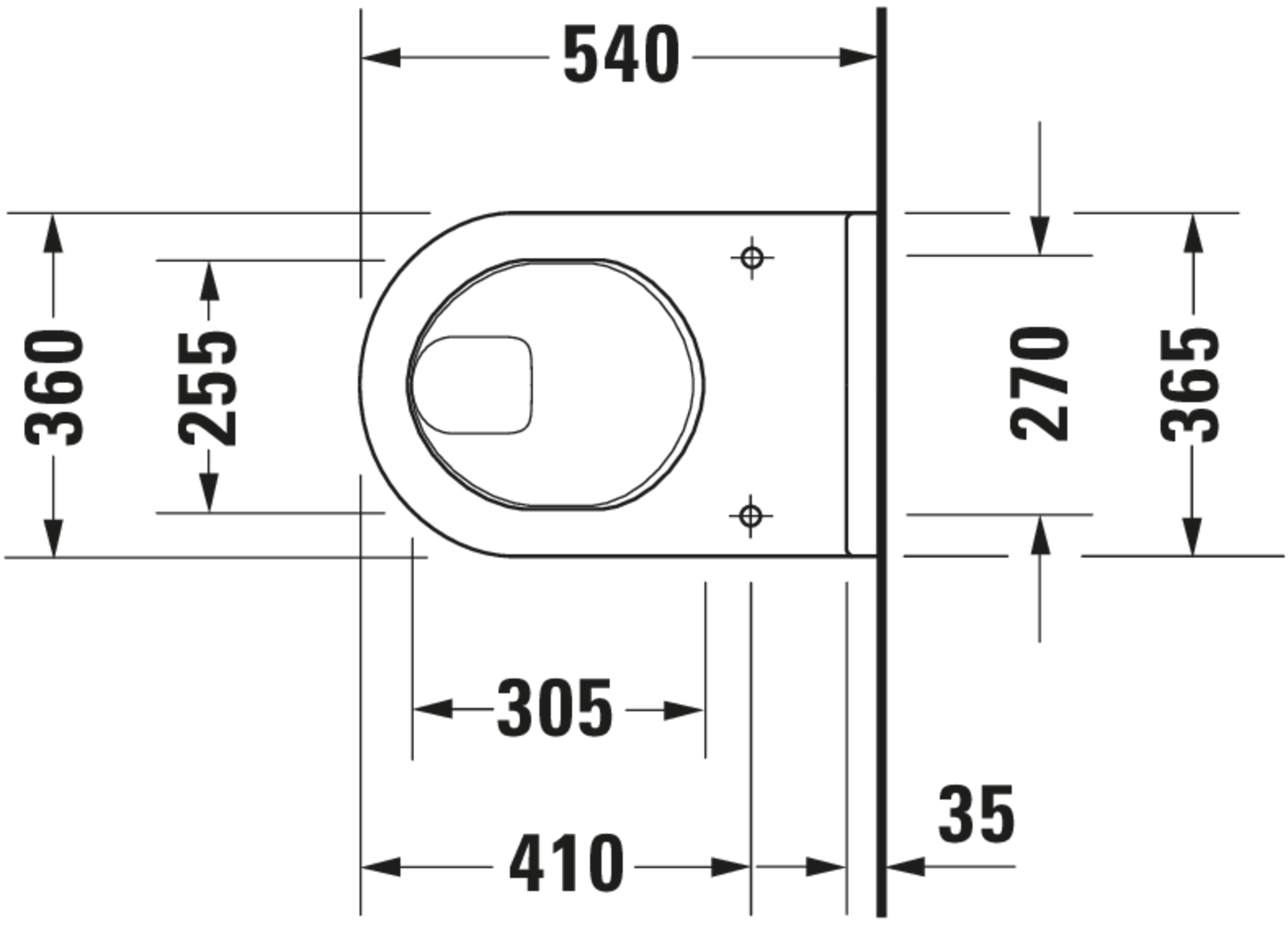 STARCK 3 #220109 wandcloset 540mm wit vlakspoel gesloten 3ltr./6ltr. (excl. zitting) Duravit