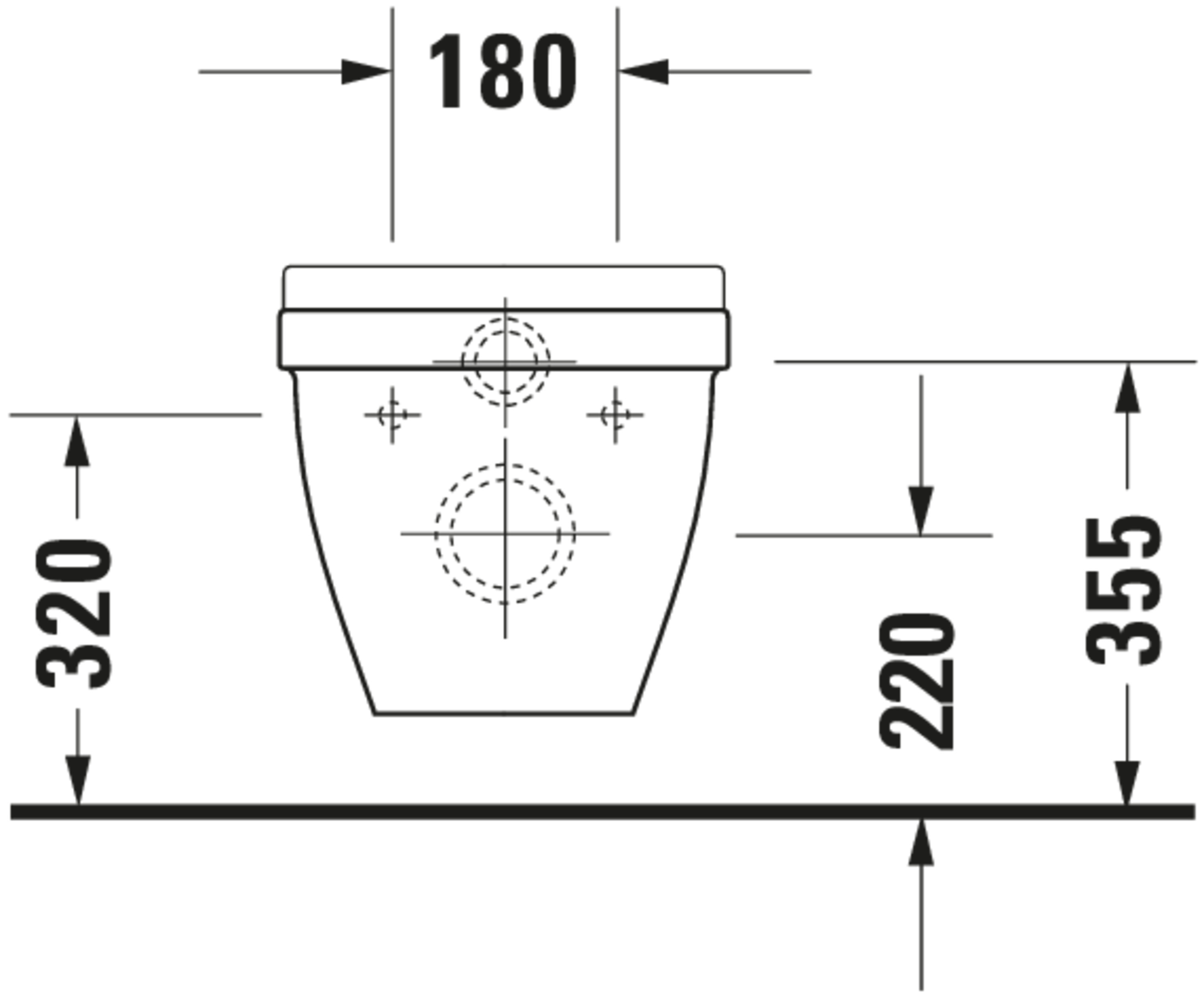 - Hartmaat bevestiging wandcloset: 180 mm