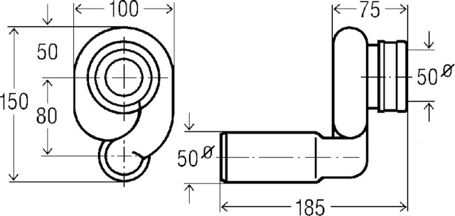 Urinoirsifon horizontale afvoer Ø50nn Viega