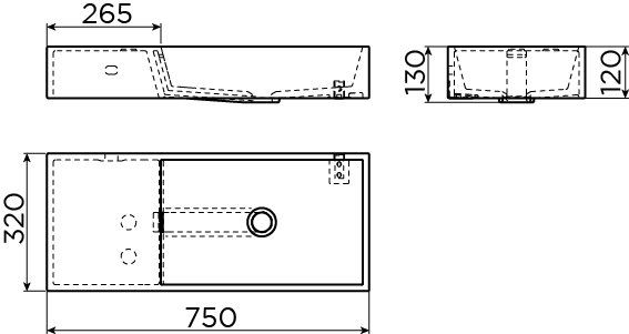 Wash Me wastafel 75cm, met 2 voorbewerkte kraangaten, links Clou